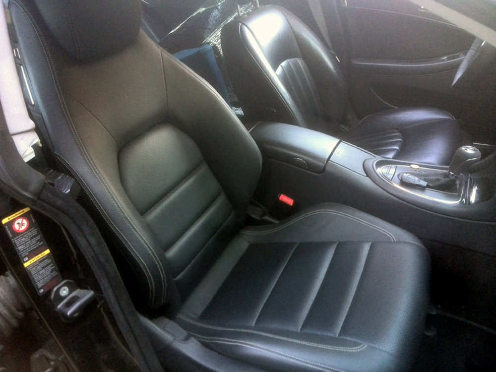 The project then headed back inside, where the OP added a set of E-Class front bucket seats and the steering wheel from a W203. He also replaced the wood-trimmed rear center console with one in black with silver trim.