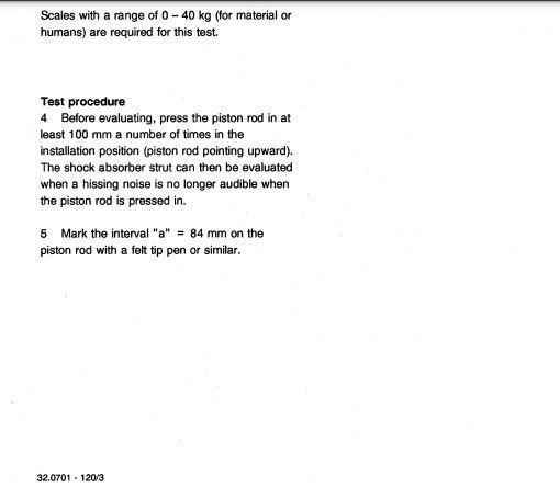 Well my grandson to whom I gave my 1990 190E has decided he wants a 4X4 pick-up truck which I suppose is a more suitable vehicle for a young man who loves to hunt and fish in the north woods. I know have the car back in my posession and will keep it as a special use car and not as a daily driver. I noticed when driving it home that the ride quality is not what it should be and began to wonder if the struts are worn since they are the originals? I have read that the old "bounce test" is not a good indicator since the struts are both gas and hydraulic and even though the car may not bounce when the front is pushed down and released it may still be worn struts. Is there a test that would establish whether or not the struts need replacing or should I just assume at 130000km on not so good roads that they should be replaced?