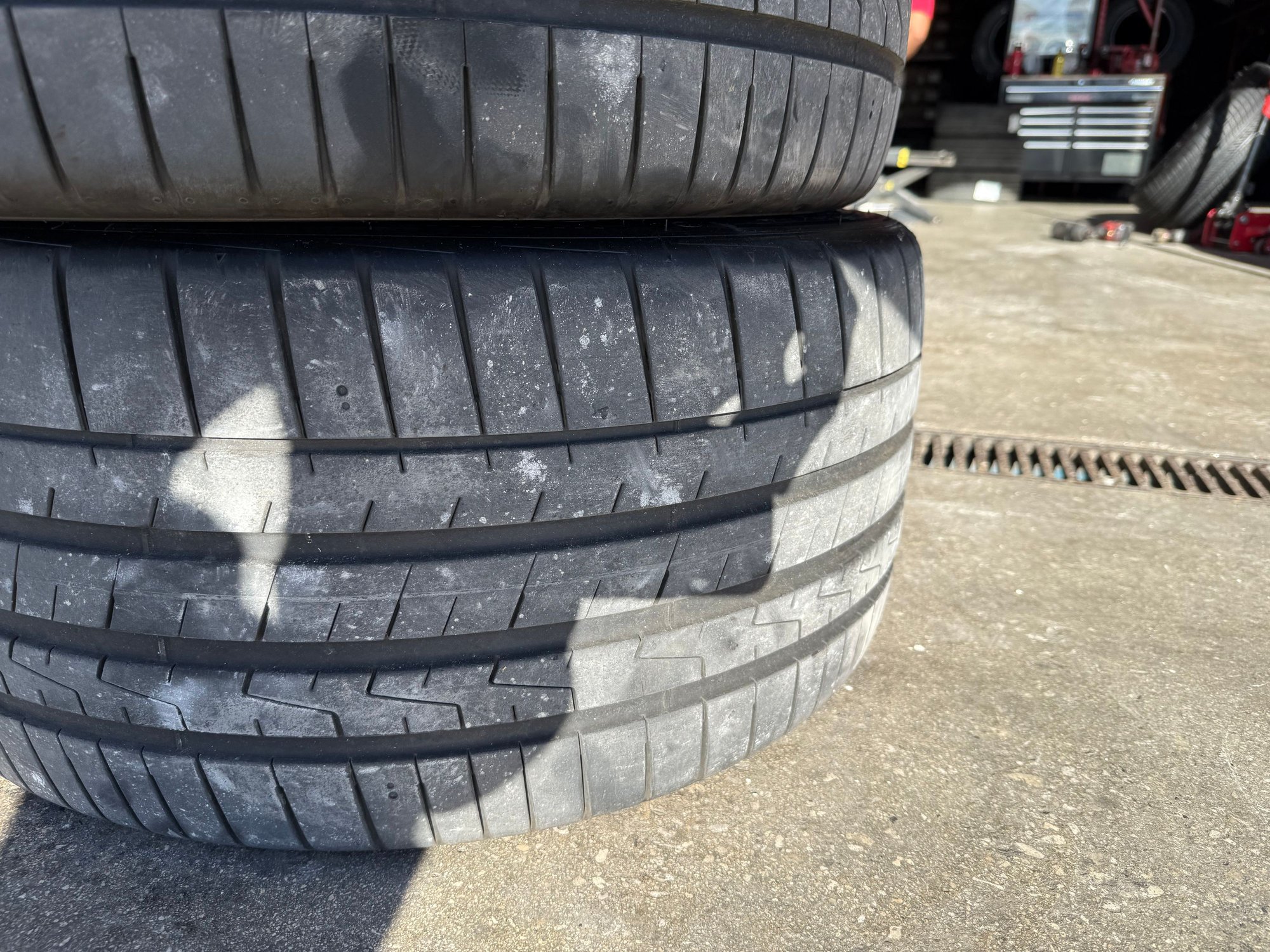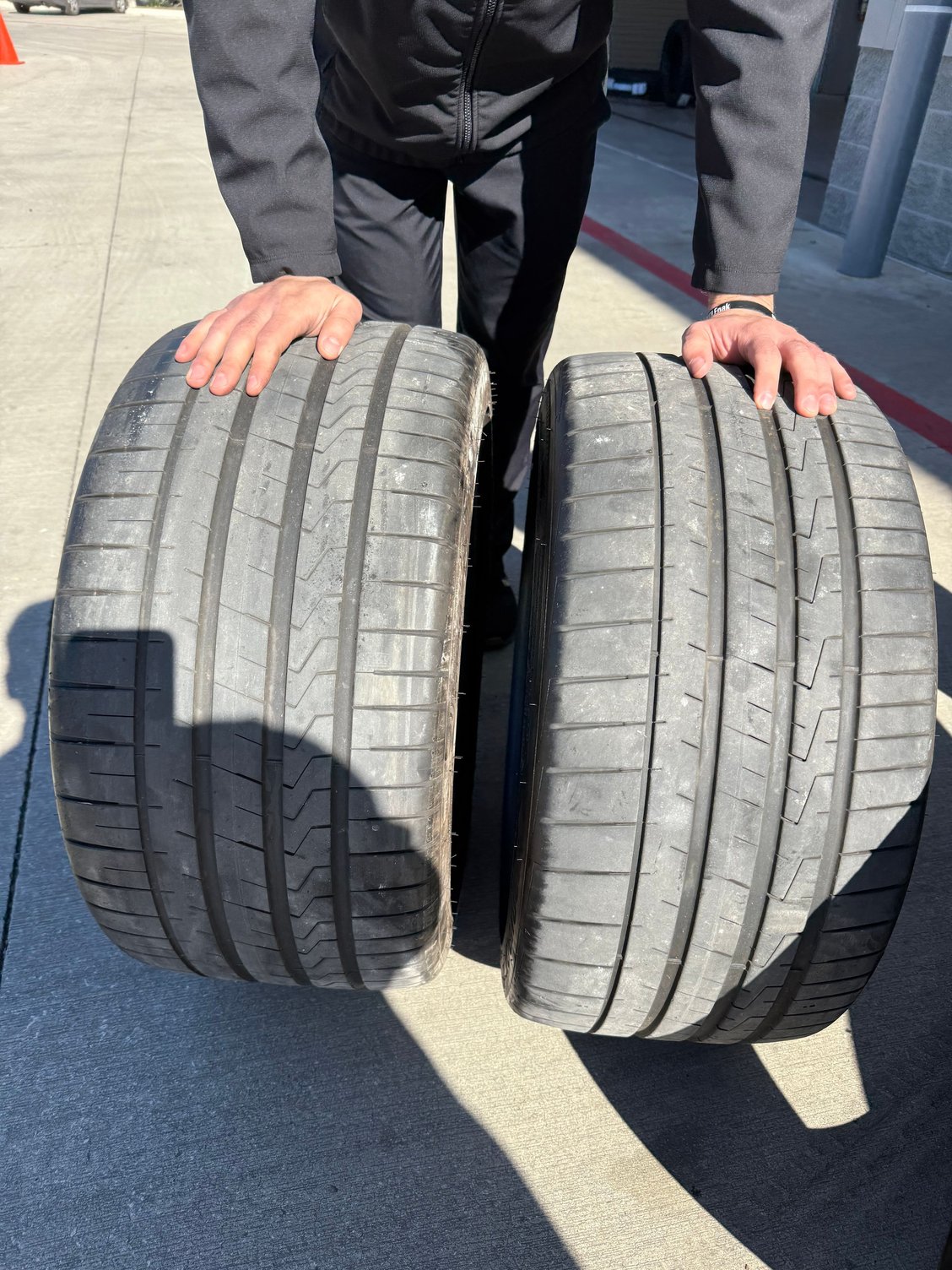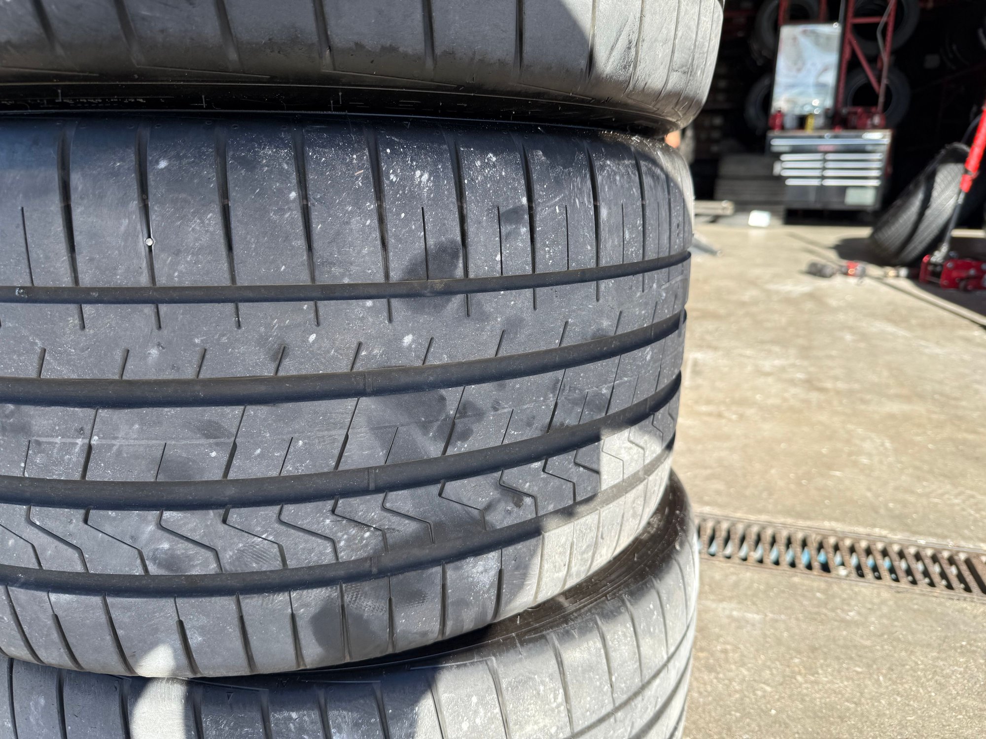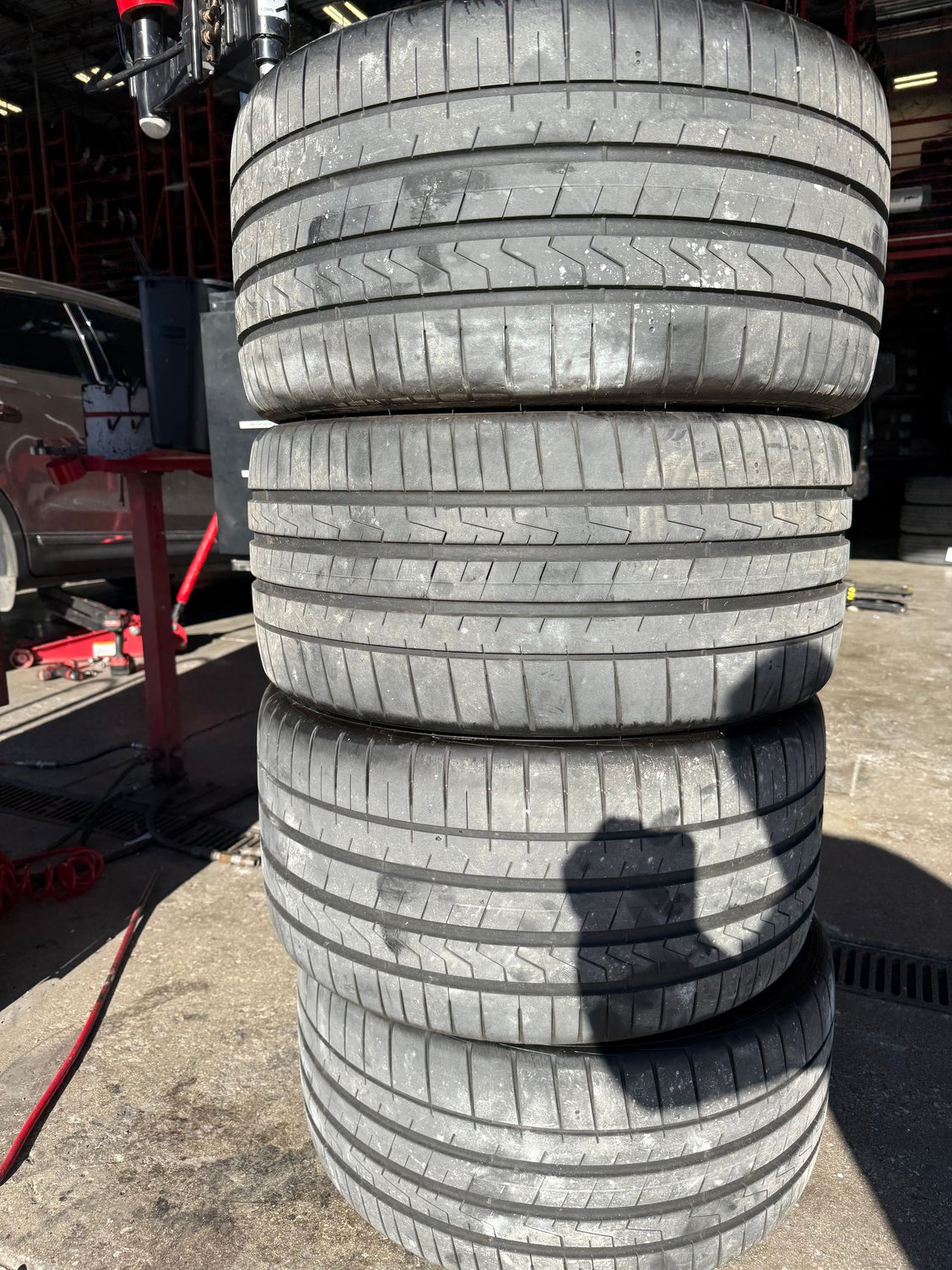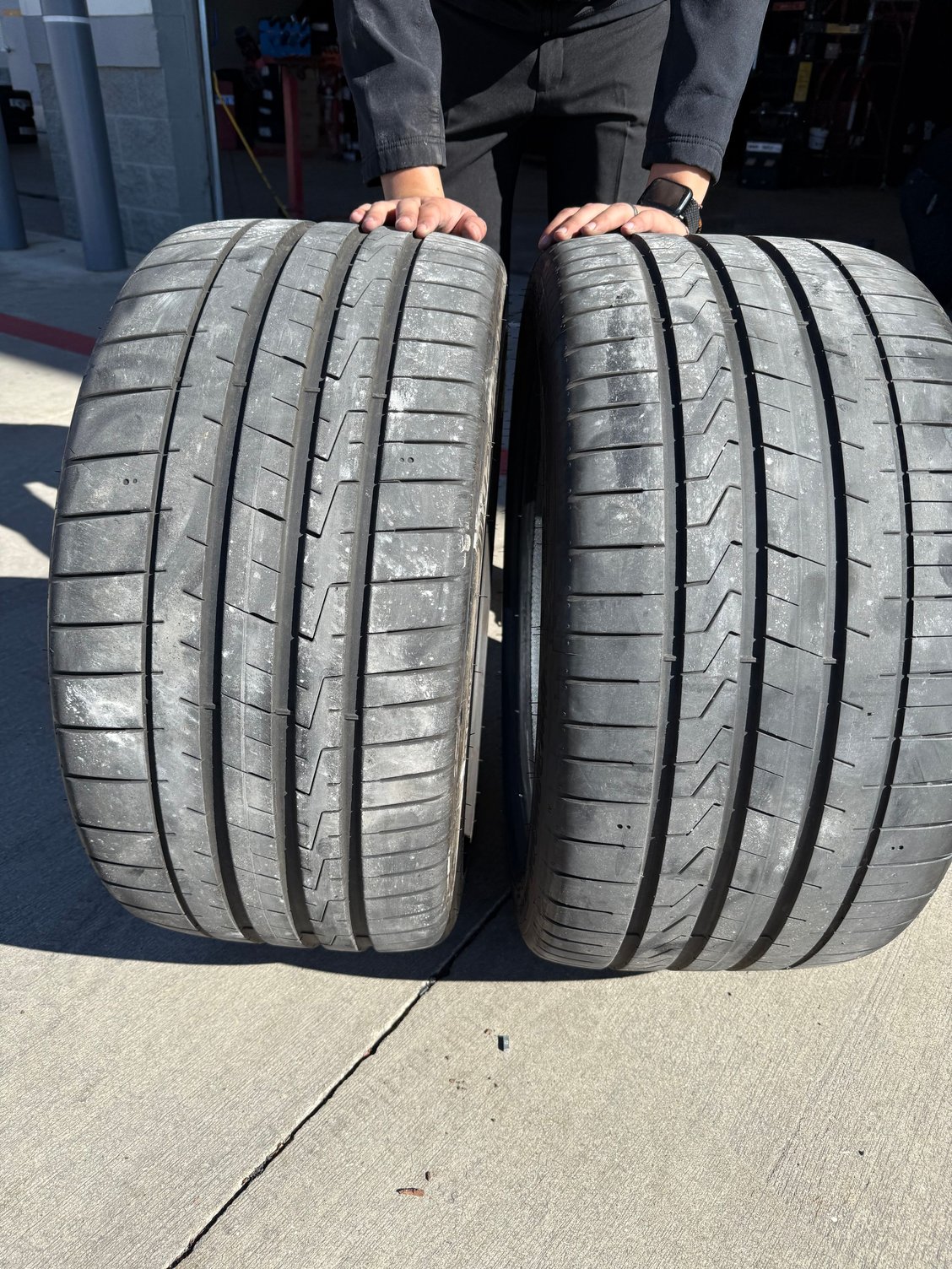 Set of four 20 inch OEM Hankook Ventus S1 Evoz Z performance summer tires for sale. 295/35/20 front, 305/35/20 rear staggered set.