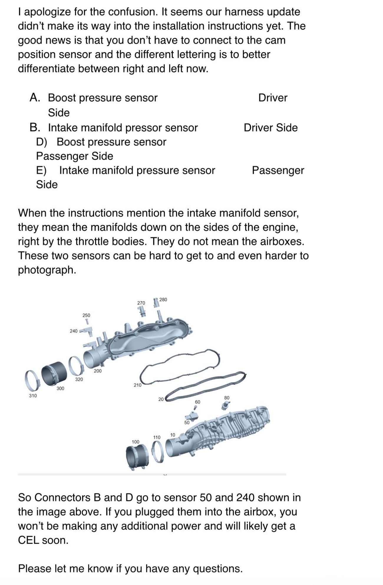 Just an fyi I may have plugged 2 of them in to the air intake box pressure sensor and not the right one. It’s running fine but now not sure if I did it correctly. And also not sure/confident renntech sent the correct diagram. So I’ll investigate later tonight.