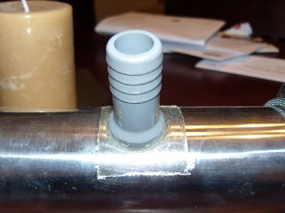 But I ended up using a high strength, high heat 2-part epoxy, and a 3/4" lawn sprinkler connector that I beveled to fit the aluminum pipe ($.55!). Drilled a hole in the aluminum piping, attached the fitting and that's it! I've attached a MAF sensor before with this stuff to another car I had, and can't believe how strong it is! Its definitely not going anywhere.