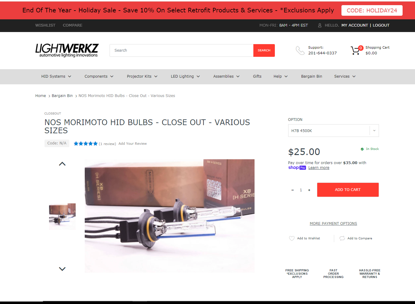 I was looking around and came across Morimoto bulbs at Lightwerkz for $25. With the savings code it came to $32 with shipping. I think my current ones I paid $50 + shipping. I figure why not have a spare set. They are the same ones I have currently installed, the H7B-4500k.