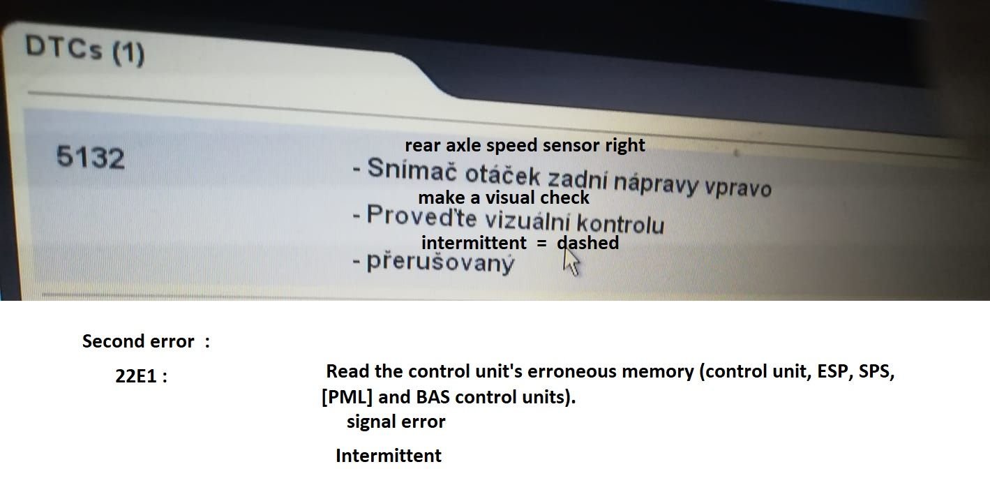 ) change ABS sensor like him plus change ABS ring first .. I clear error in diagnostics but after a move with car 100m i have same problem... some solution ?? more down on the photo.
