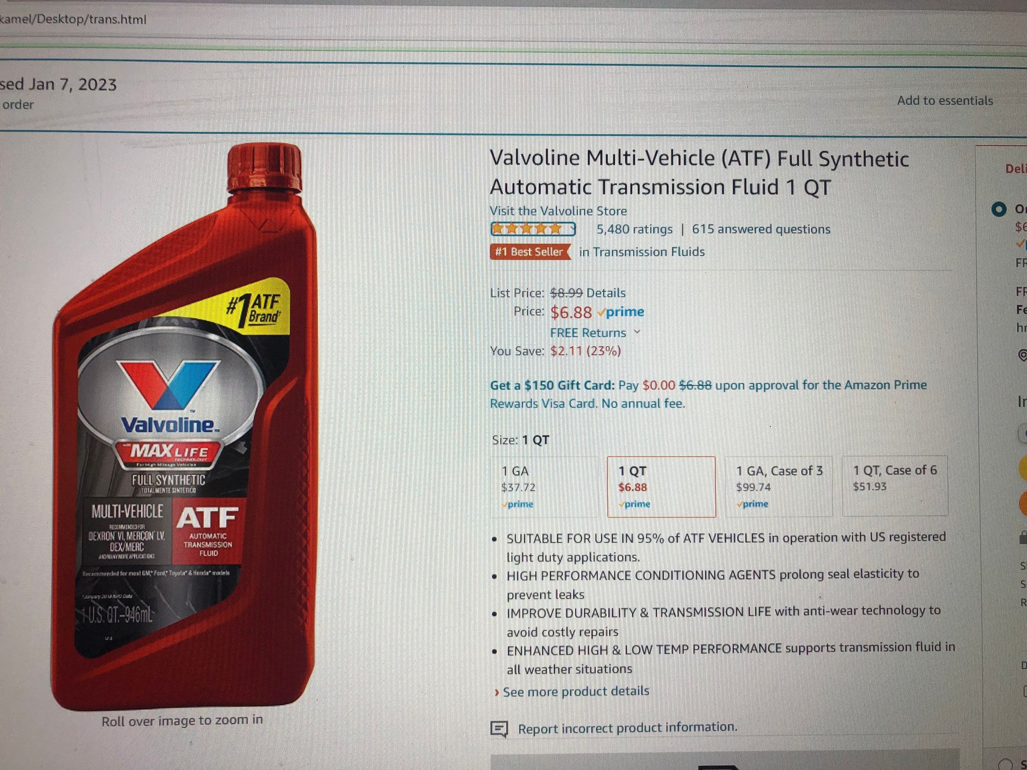 Not sure if that is approved for your transmission. You need to confirm absolutely that fluid is approved or you may have effed up your transmission. Here's a source for the correct stuff.