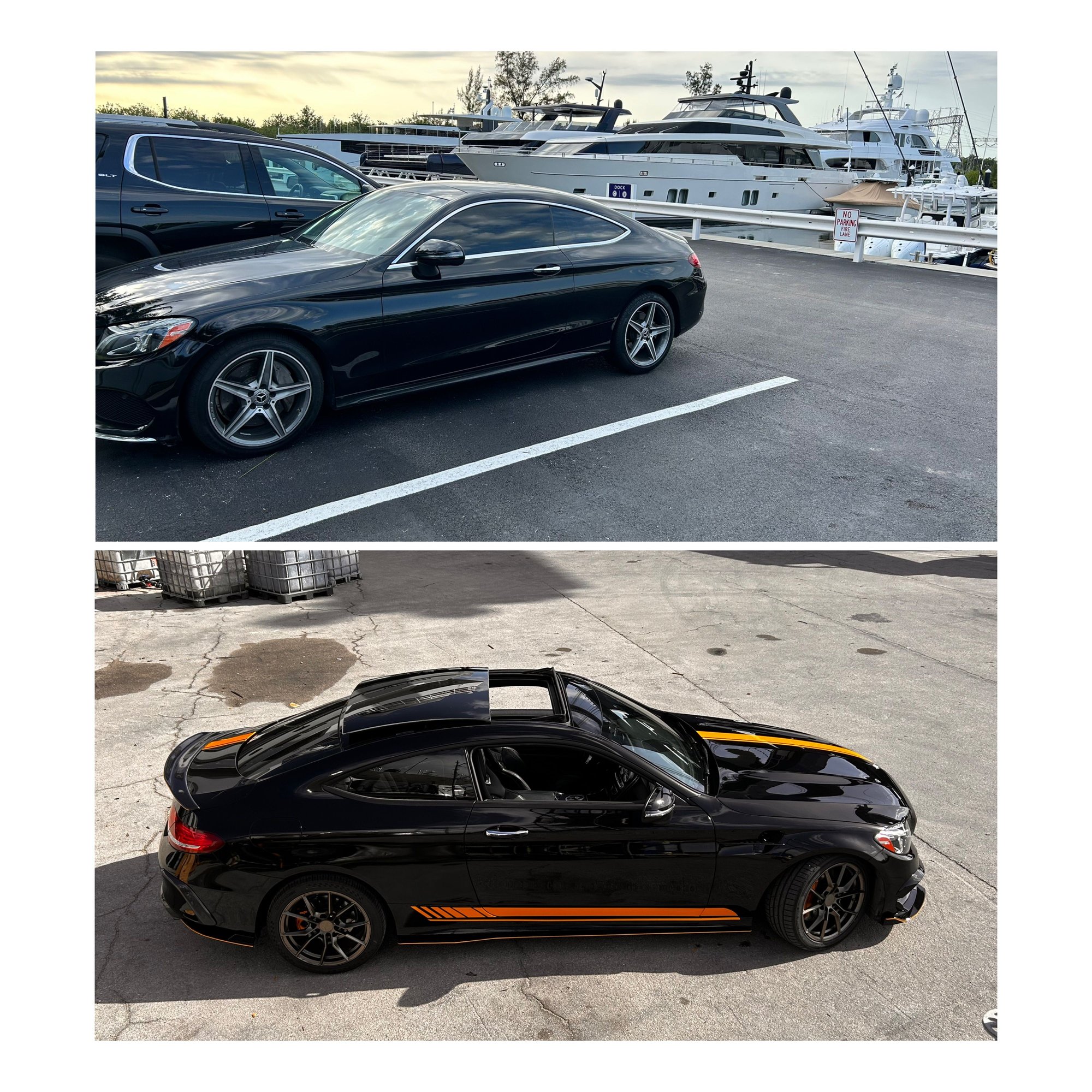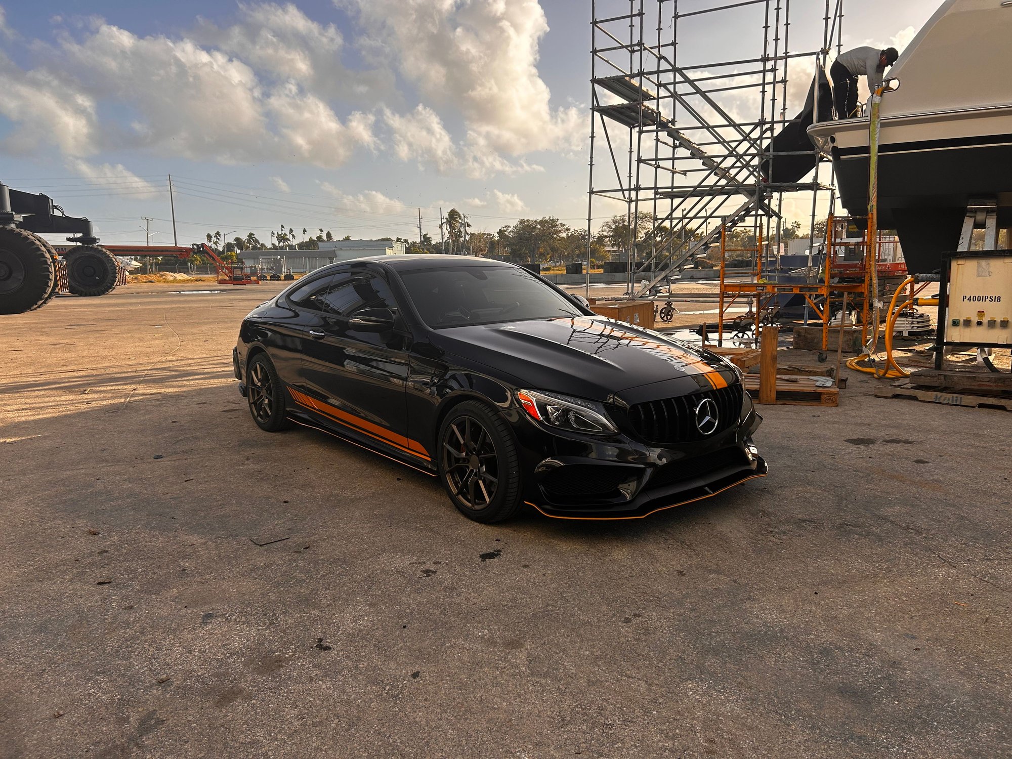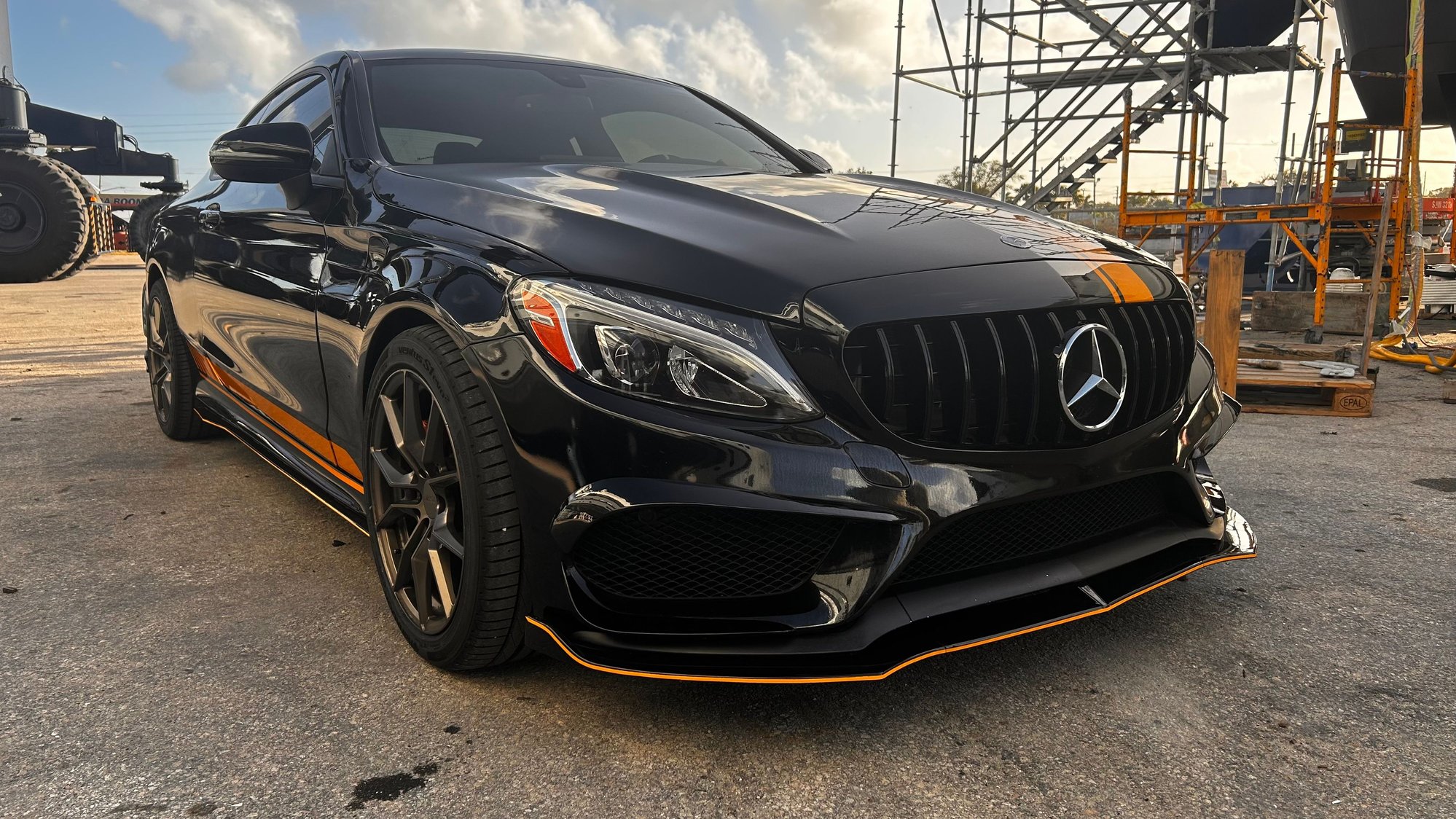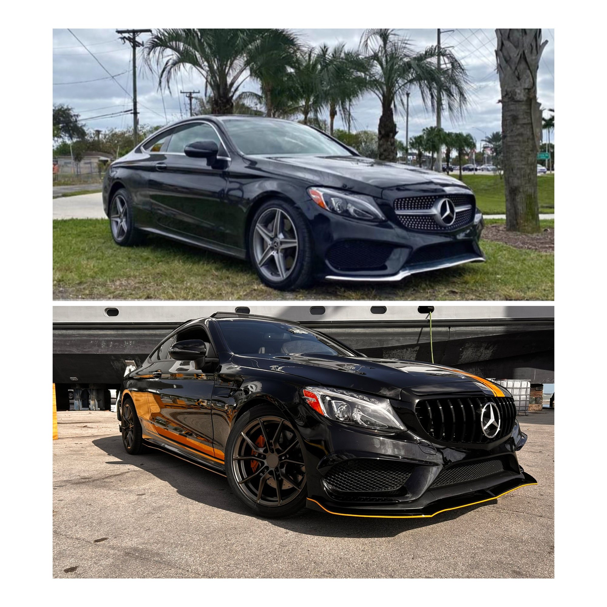 2015 C300 lowered on BC Coils sitting on Ferrada 19x9.5 a custom 3 inch straight pipe from the turbo back and a stage 2 Tune, custom upgraded 270 amp alternator.