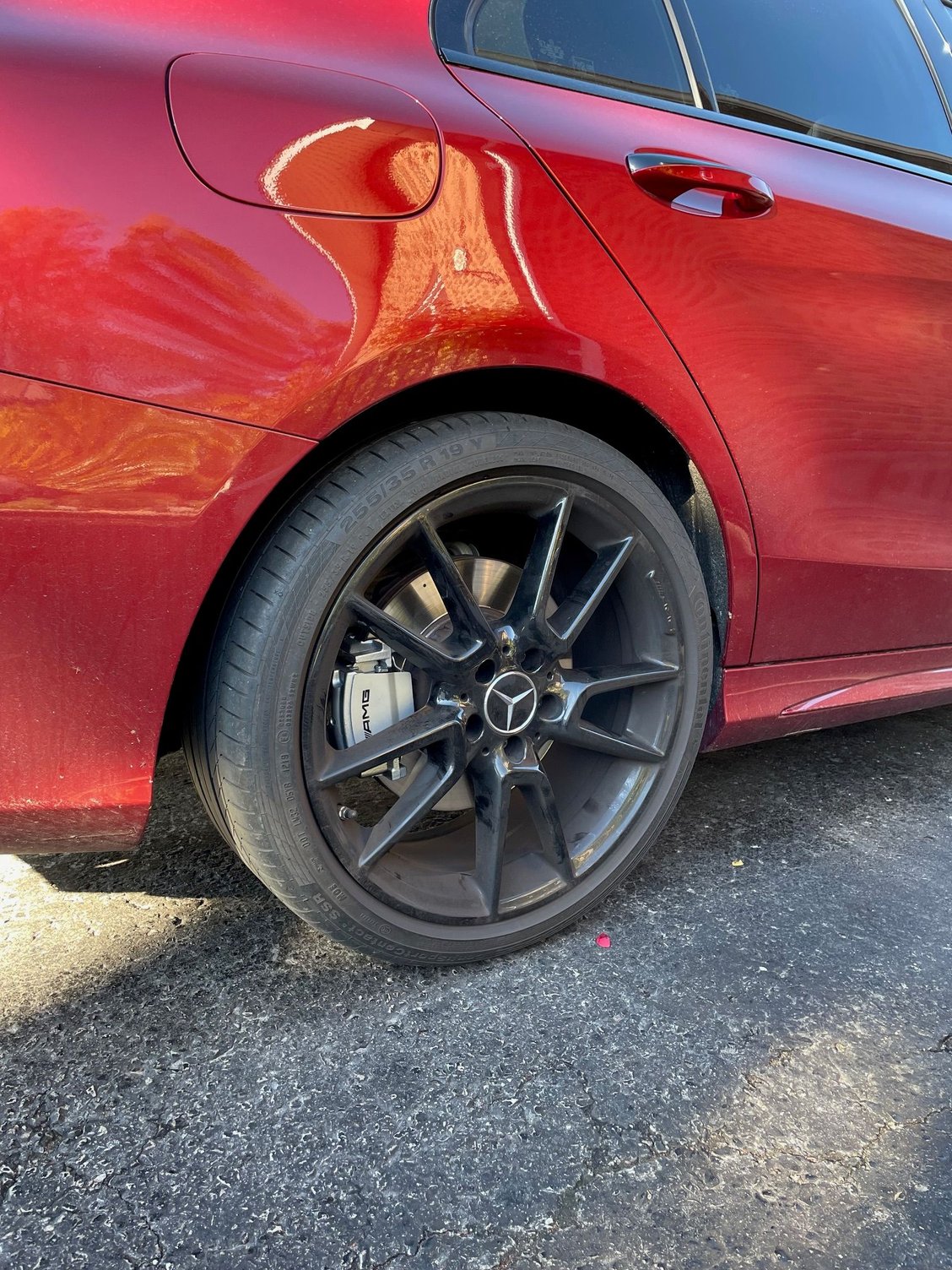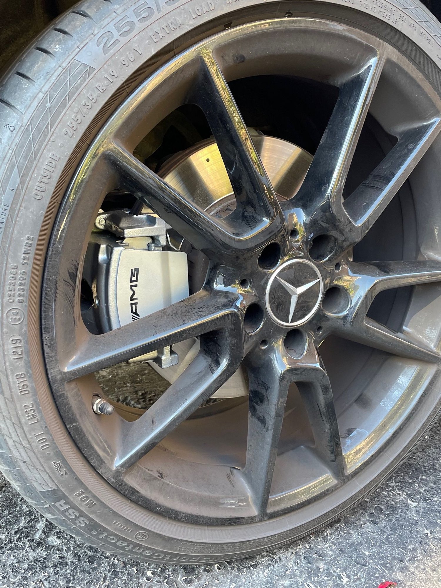 **Caliper covers are left as unfinished Stainless Steel, ready for you to paint any colour. **Images in photos are of my own C43. Covers have been painted with silver caliper paint with AMG decal. Ignore the poor masking job and paint overspray on the rotor! I also didn't realize how dirty my rims were!