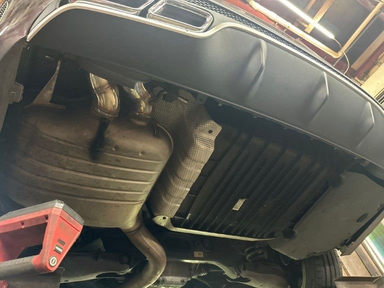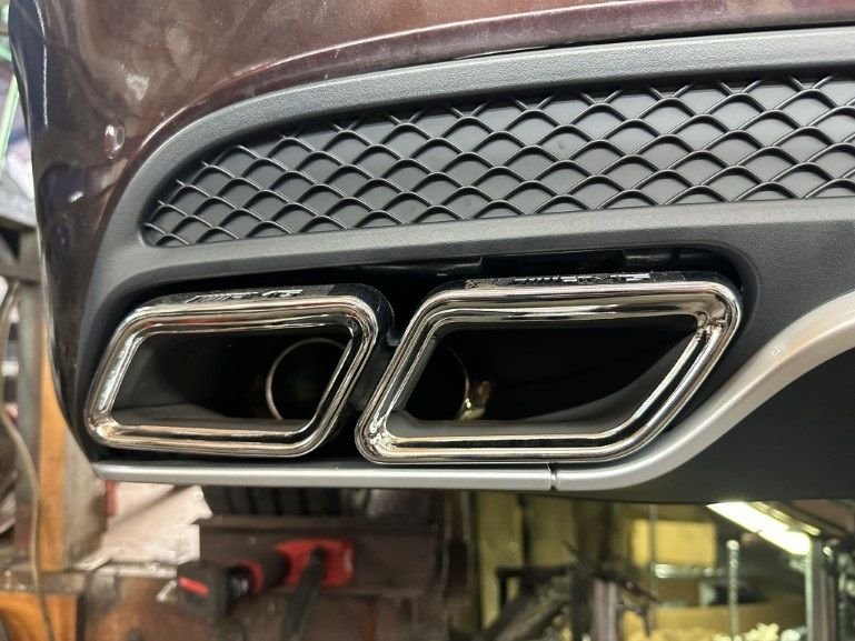We helped the owner replace a new C63 Style diffuser with tips, but also extend his exhaust pipe into the tips, so the hot air will pass right trough them, to make sure this won't happen again.