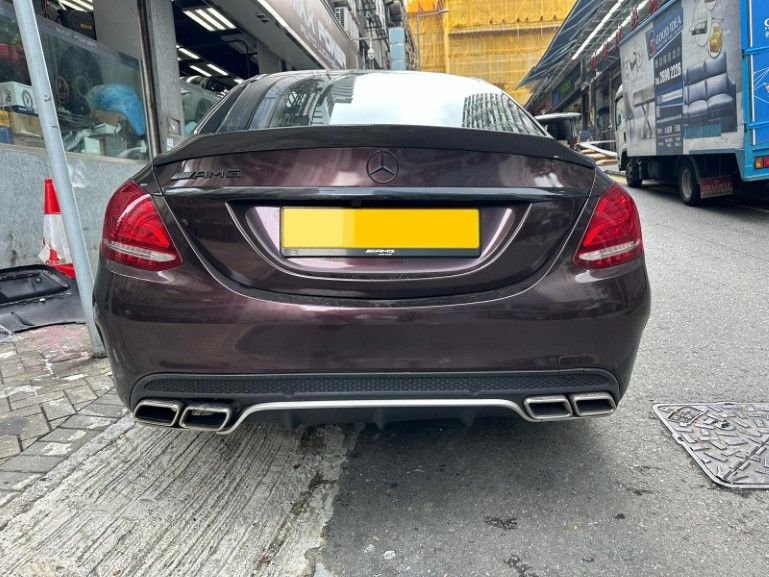 For context, it's a standard W205 which upgraded to C63 style body kit, but the exhaust tips on the left side got a little deformed and the diffuser was also missing the trim.