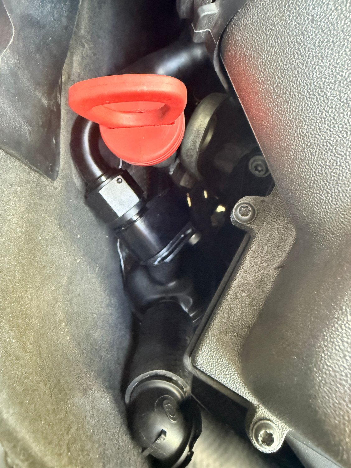 To me this gives 2 benefits. 1-Easy access for future PCV changes. 2-PCV retains near stock location near the intake manifold. Other thing I had to do was buy some 90 degree aluminum bar stock to make a bracket.