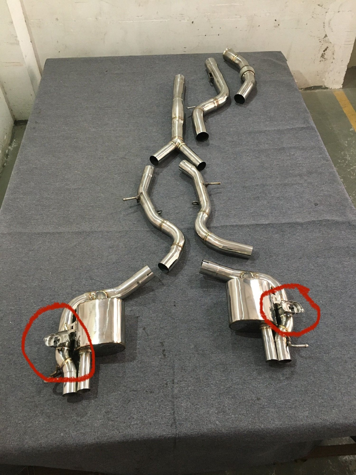 picture: res exhaust with the special fitted brackets for the OEM valves installed actuator