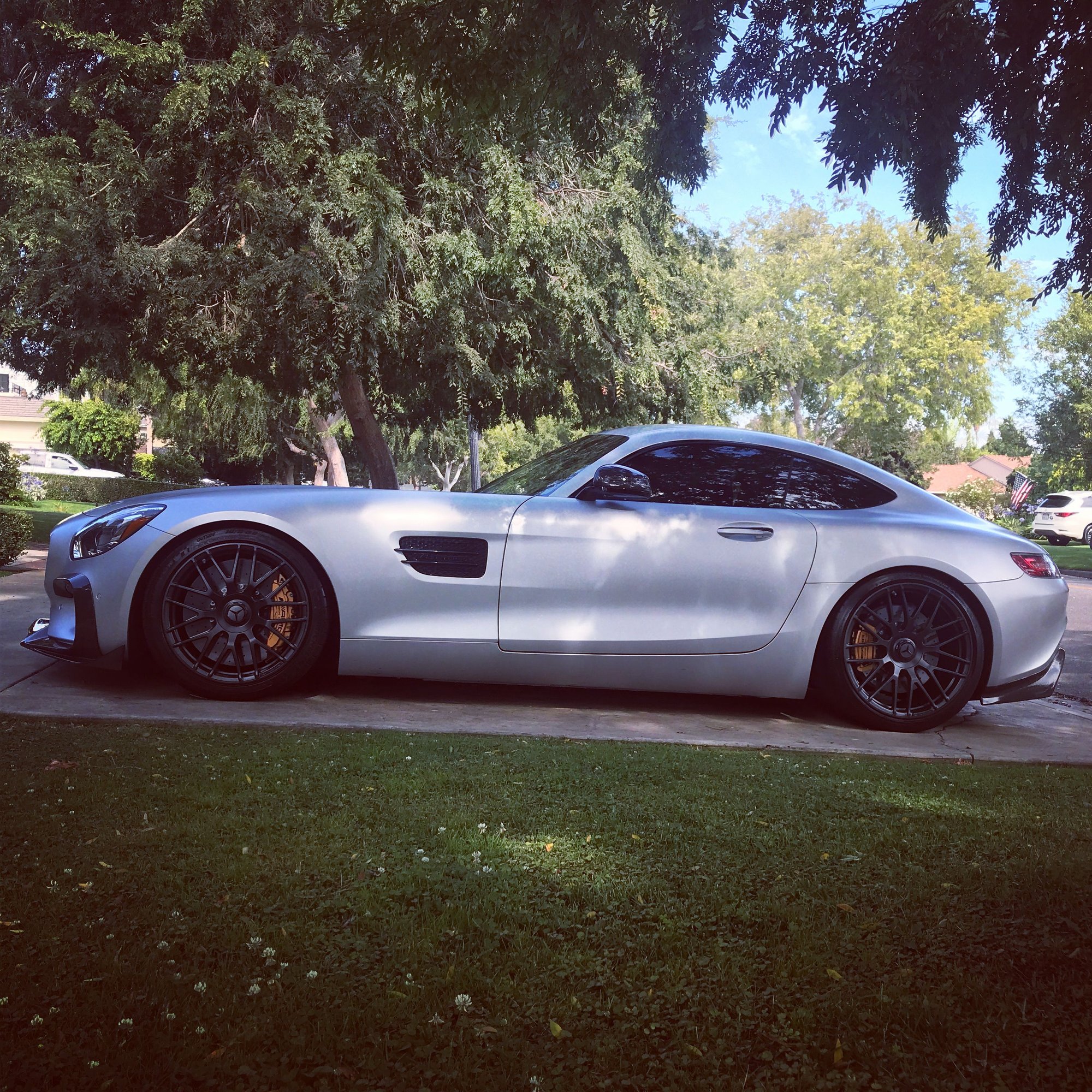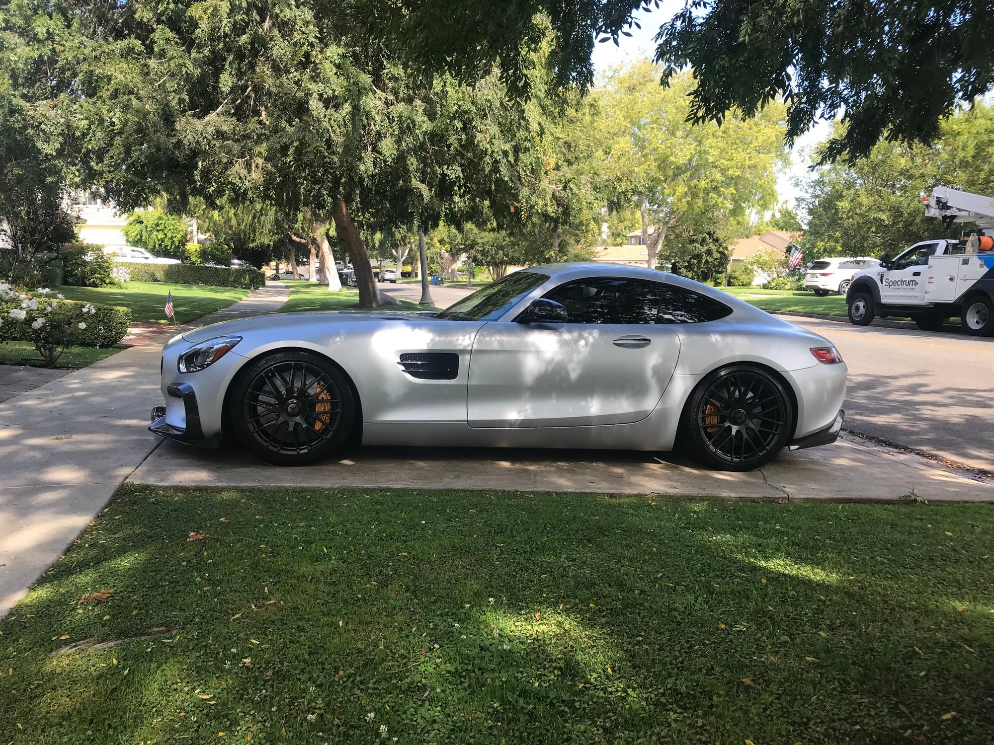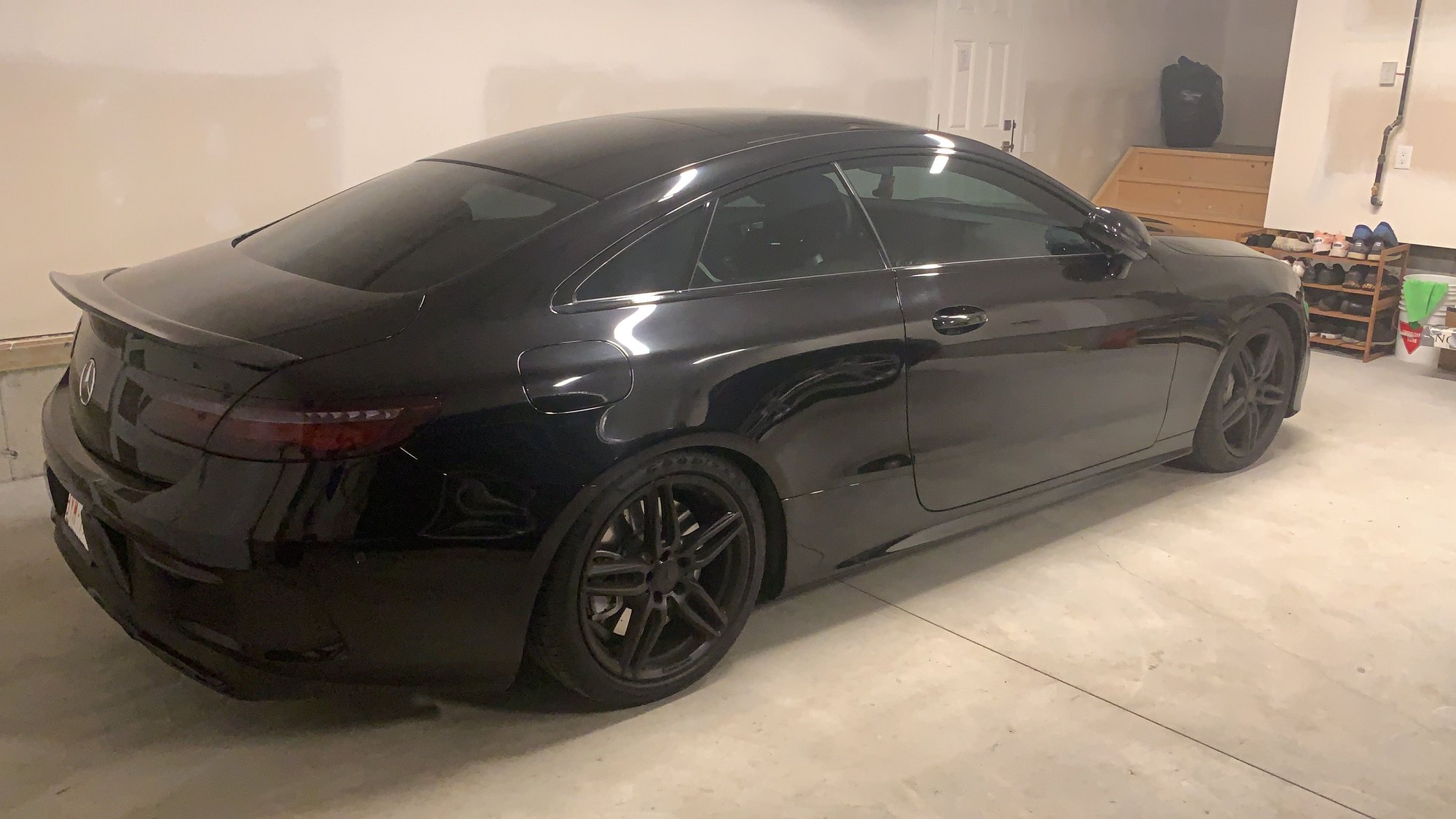 Though I haven’t done this on my AMG GTS, I had done this on my E450 Coupe. I would not recommend it. It was lowered on stock wheels without spacers and the rear sat lower than the front and gave it a bagged look. It was only until I threw on an aftermarket set of wheels with the right offset when the car looked decent and proper. Not sure if this pic will help this is the lowered with oem wheels.