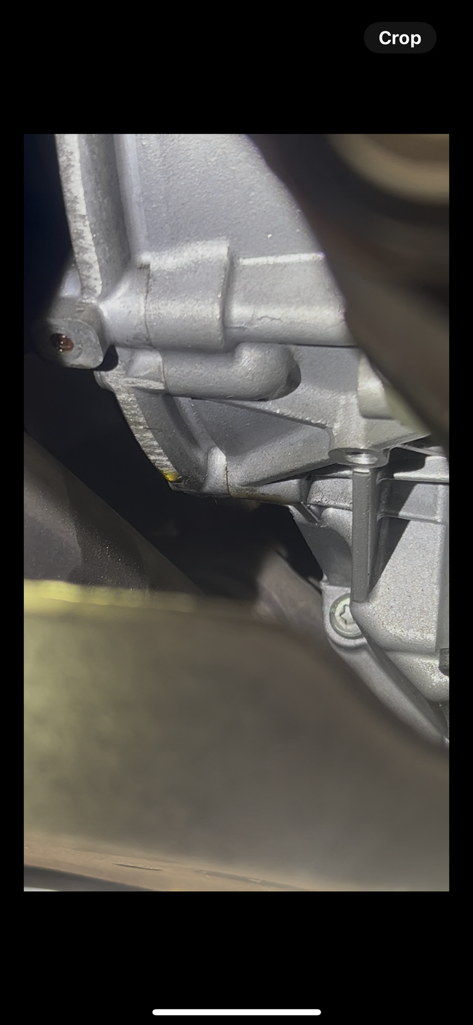 Oh gosh, no that is not the "weep hole" leak where the transmission needs to be dropped to replace the radial shaft seals just inside the gear box. This is a leak from the differential cover. It's either a failed differential cover o-ring or the tiny o-ring that seals the channel between the casing and the differential cover. Refer to bulletin 2612 pages 25 figure 7 for the small o-ring, and page 26 figures 8, 9 and 10 for the differential cover gasket. Bulletin 2612 REPLACES 2076 12_2019 Getrag Remove Differential.pdf