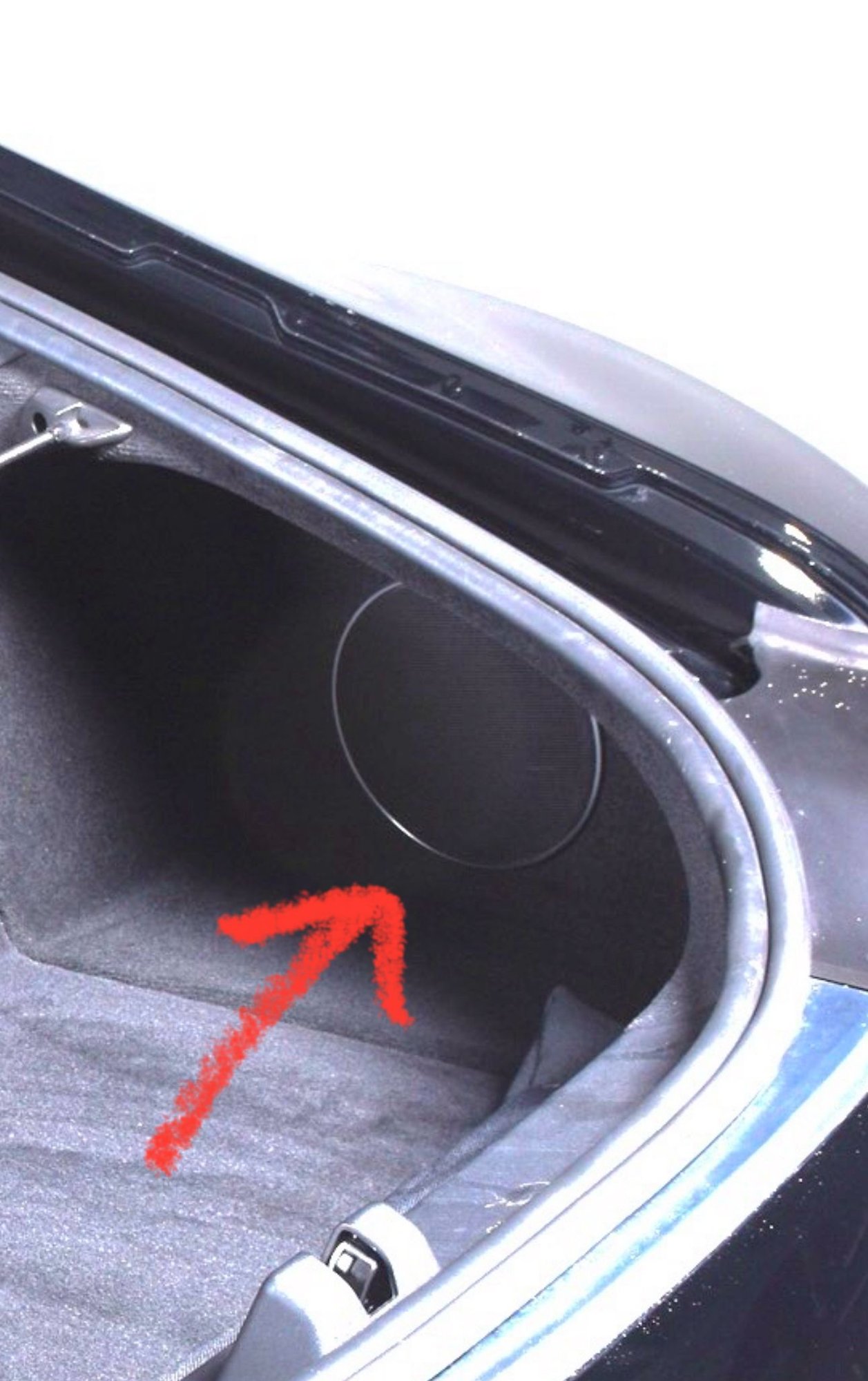 Remove the entire carpeted panel. Start by popping off the plastic trim piece that covers the trunk latch. It just pulls straight up. The there's one torx screw attaching the cargo cover bracket and one plastic clip to pop out. Then the carpeted panel should be removable. Just go slowly.