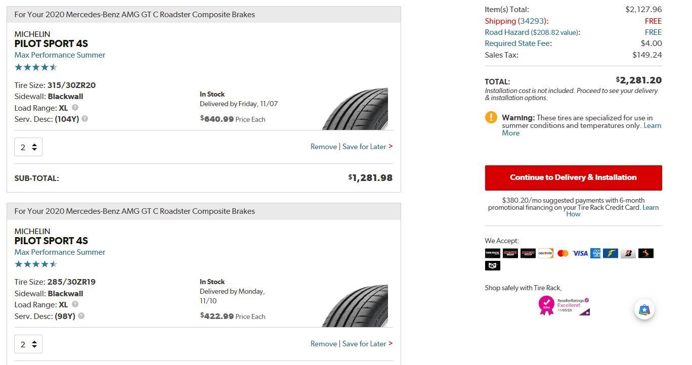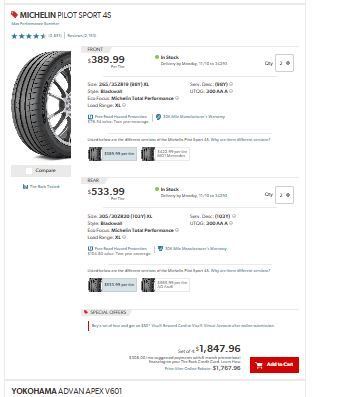 Quote: Recently purchased a 2020 GT-C Roadster and she is in need of new shoes. I am a BIG fan of Michelin PS4S tires and have them on several cars.
