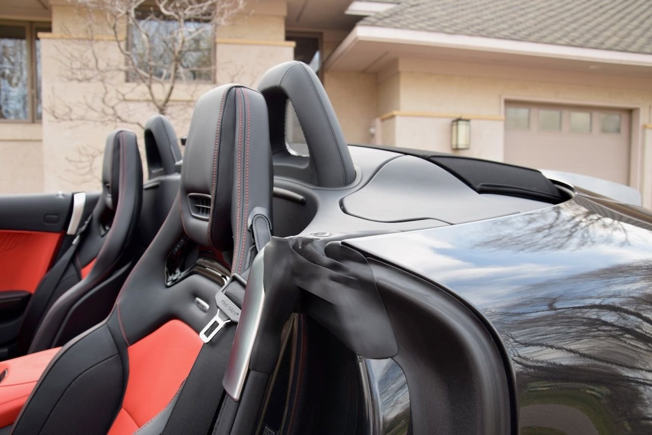 Looks like the rear cover flaps from the soft-top mechanism are missing. I had seen a couple of cars where this wasn't installed from the factory. But they also are fragile and the mechanism can break. Just FYI.