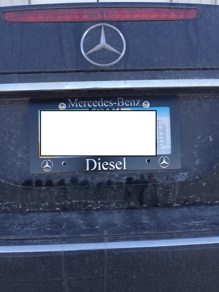 So I made this up. Don't mind the black paint (frame or car..), it was just temporary to see if wanted stainless on front or in back. The "n" in benz also has a piece of lint in it from wiping it down before paint. :P