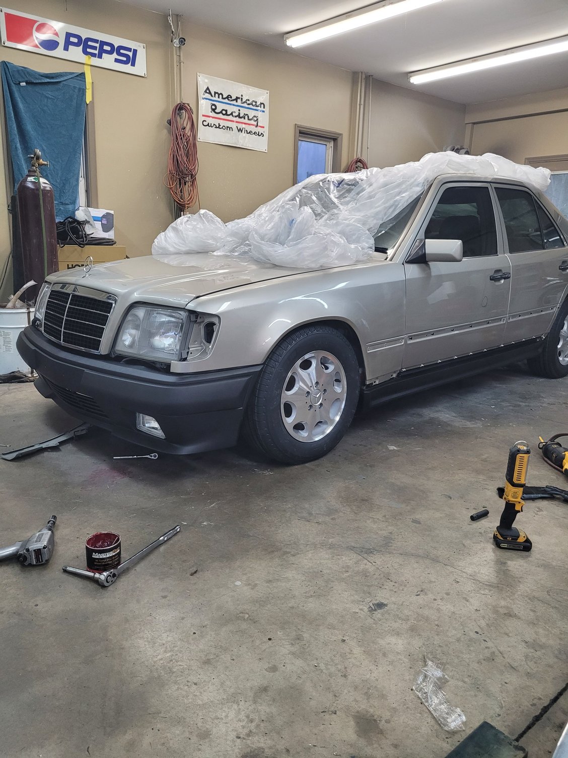 Just taken at the local MB dealership. Even with $200k plus cars in the shop, the W124 had the attention of the techs who quickly formed a small group around the car.