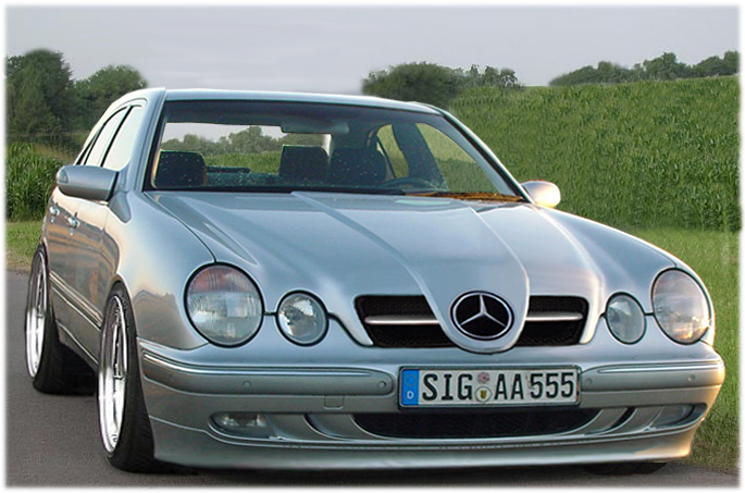 Interesting concept, but terrible visually.....that nose doesnt even look right on an SL let a lone W210.... (saw a real one just the other day in fact),