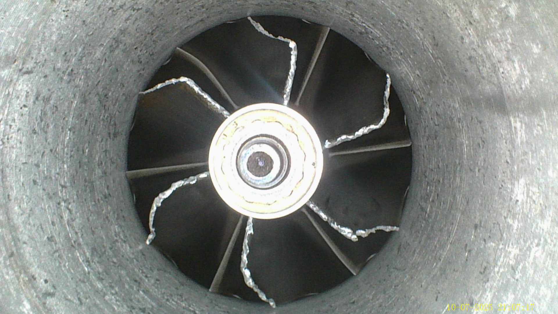 So I did check the impeller when the noise first appeared. I just checked it again and I think I found my answer. Looks like it's time to park it and start searching for a turbo