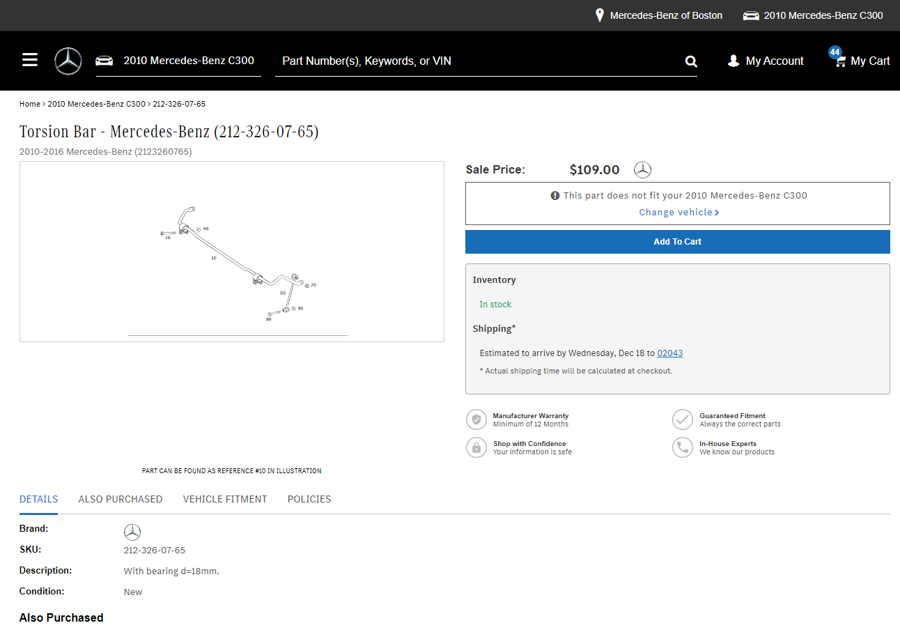 I was recently pricing new sway bars for my W204 which are similar to the W212 so I know they arent expensive. For that part # its $109 at my local MB dealer. From my personal experience I would go with Genuine MB whenever possible.