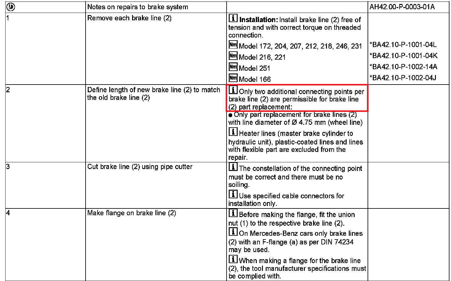 I wouldnt doubt that Mercedes would only replace the entire line, for whatever there reasoning. When mine was in for some work they gave me an estimate for over $4k to replace the rear passenger line. Which is why it put a fire under my *** to get it done after seeing the video inspection they sent me of it. The flare tool was the most expensive cost, 12' of nickel copper tubing was $7, the hex spacers were $5/each and the nuts were $6/each. I wanted to save money so I bought non Mercedes fittings and they were junk, the machining was horrible i just threw them away. I def recommend using the Mercedes fittings.