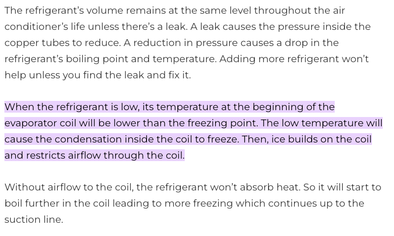I really wonder how can A/C with low refrigerant freeze return line ... how can this be?