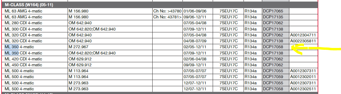 ALL the ML of that generation (W164) use permanently engaged clutch, or clutchless compressors: 7SEU17C.
