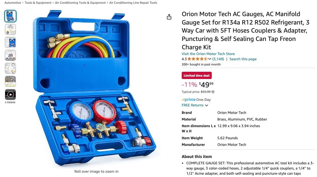 Pressure gauge at the HVAC LP and HP r134a port is a must have too, to troubleshoot.