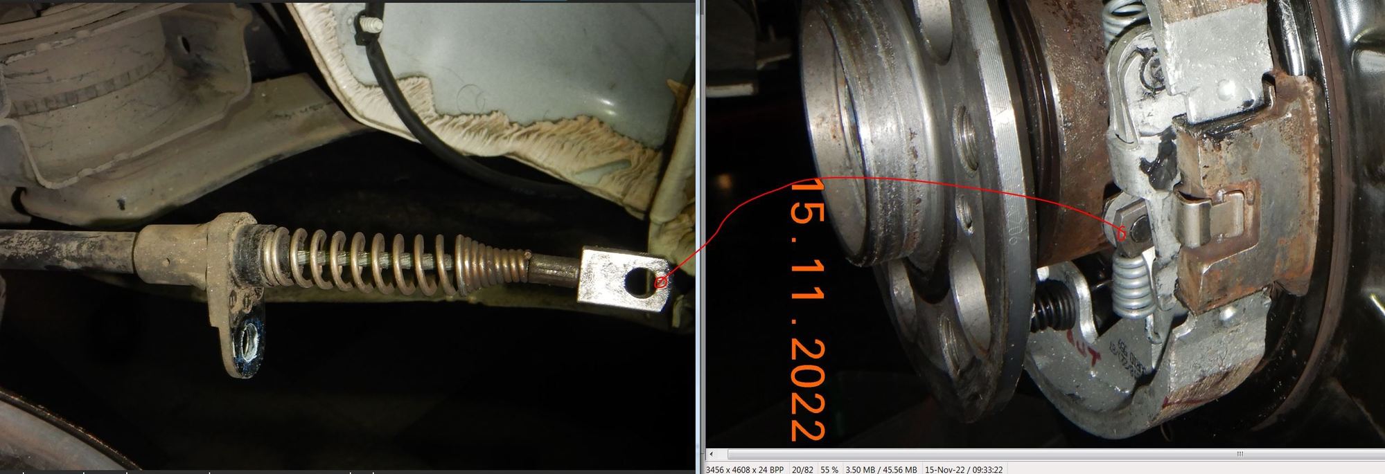Thanks for the pics and effort, but it's not the pull cable, it's the release cable that is the issue. I pull the handle and maybe 1 out of 8 times the handle is at max pull and the brake isn't fully released. Wait, as I type this it just dawned on me, could it be the sensor that turns off the dash light that needs adjusting? Hmmm, I gotta think about that the next time it hangs up and see if the brake actually did release fully, and it's just whatever switch that isn't turning off the dash light. Where is this sucker and is it threaded/adjustable at all ...anyone?