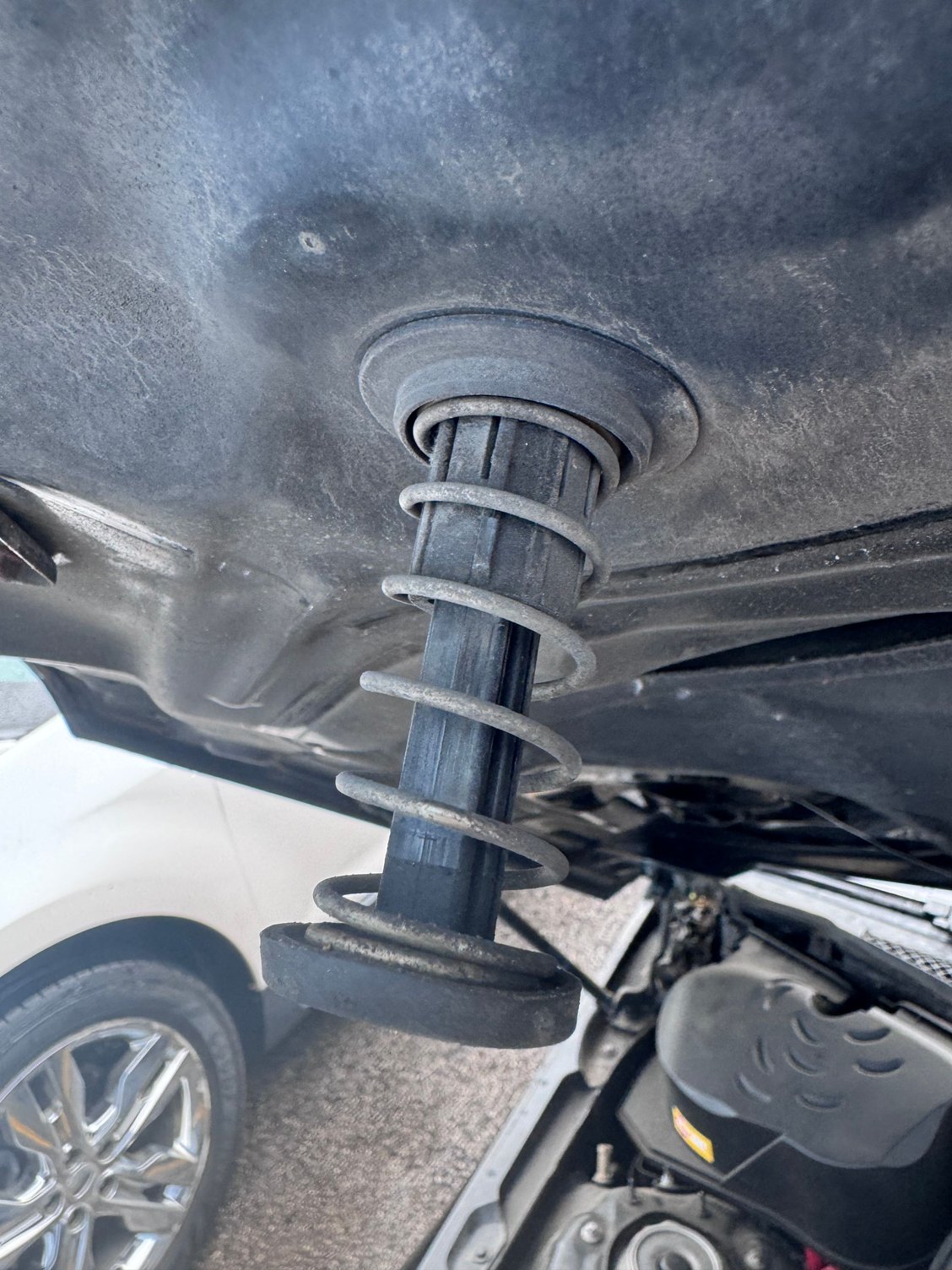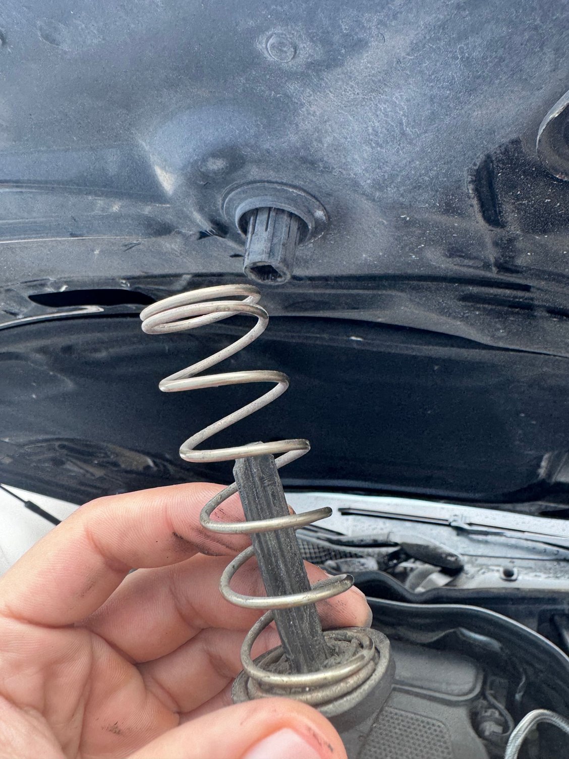 Opened the hood and it fell out. I tried to get it back in but was not able to, good amount of force needed for it to look like the other still in tact one. Is it broken? I have posted the picture of the good one for reference.