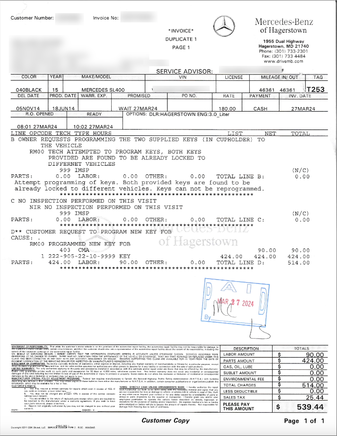 I was wrong before, the cost of my replacement was much less than $650 like I said. $650 probably included getting a cut key, which I did not. This was a little more than a year ago in March. Looks like they charged only ½ hour to program the new fob.