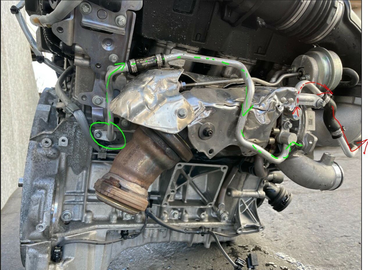 M276.8 3.0 Turbo, coolant source for turbocharger.