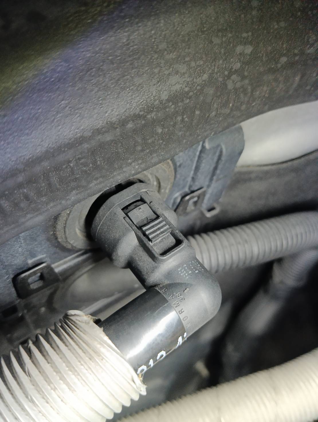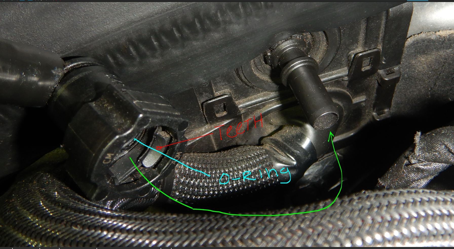 While spinning left/right the connector, pull backward the connector away from that bulkhead/firewall located vacuum pipe.