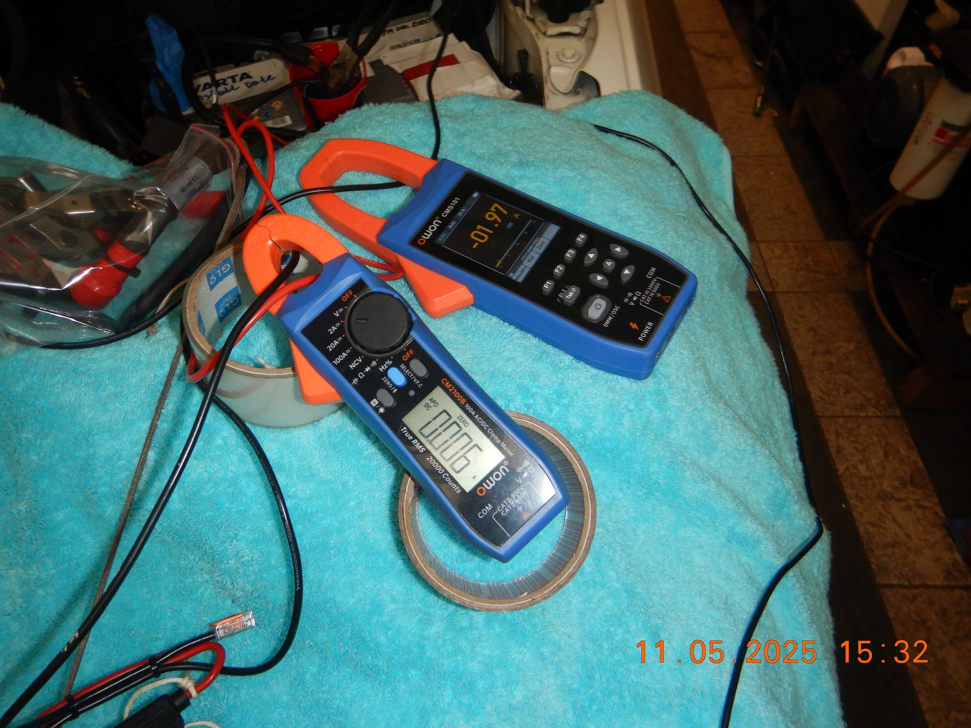 Below is me trying to use baby Owon for Leakage Current test and the bigger OWON as regular current clamp.