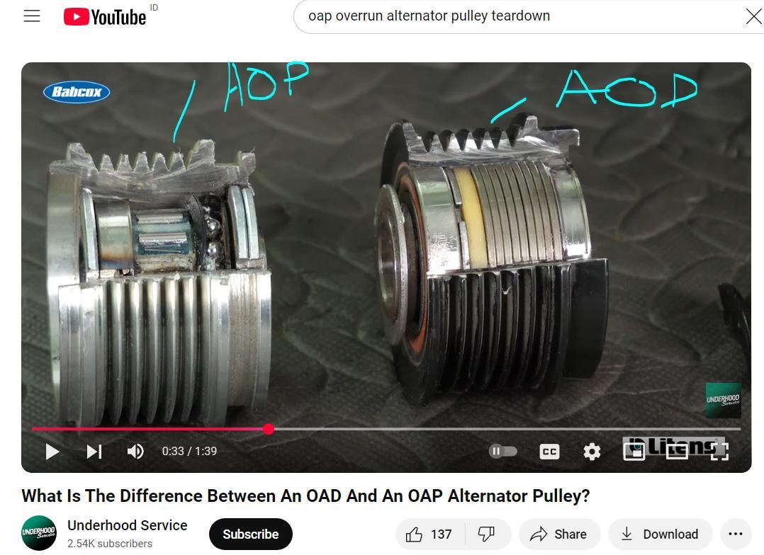 Interesting to learn that one-way coupling is used on alternators too...