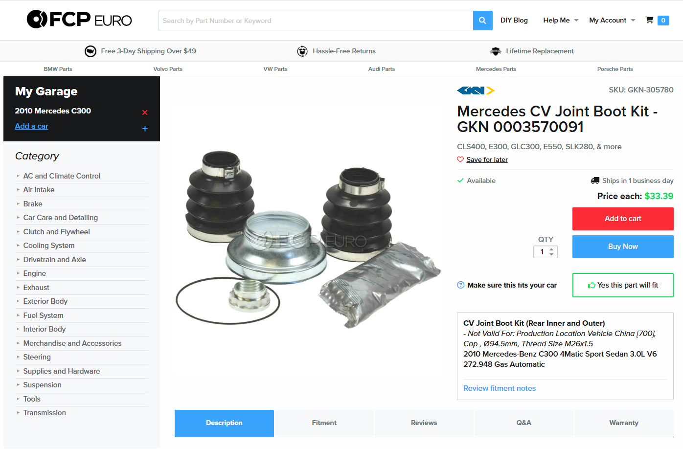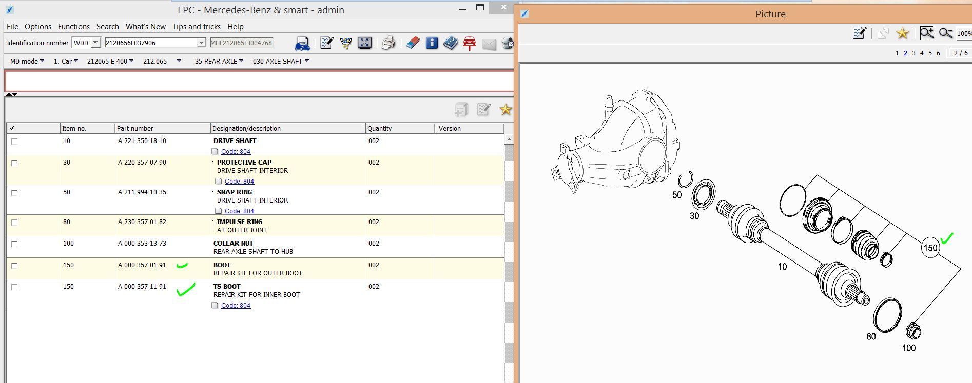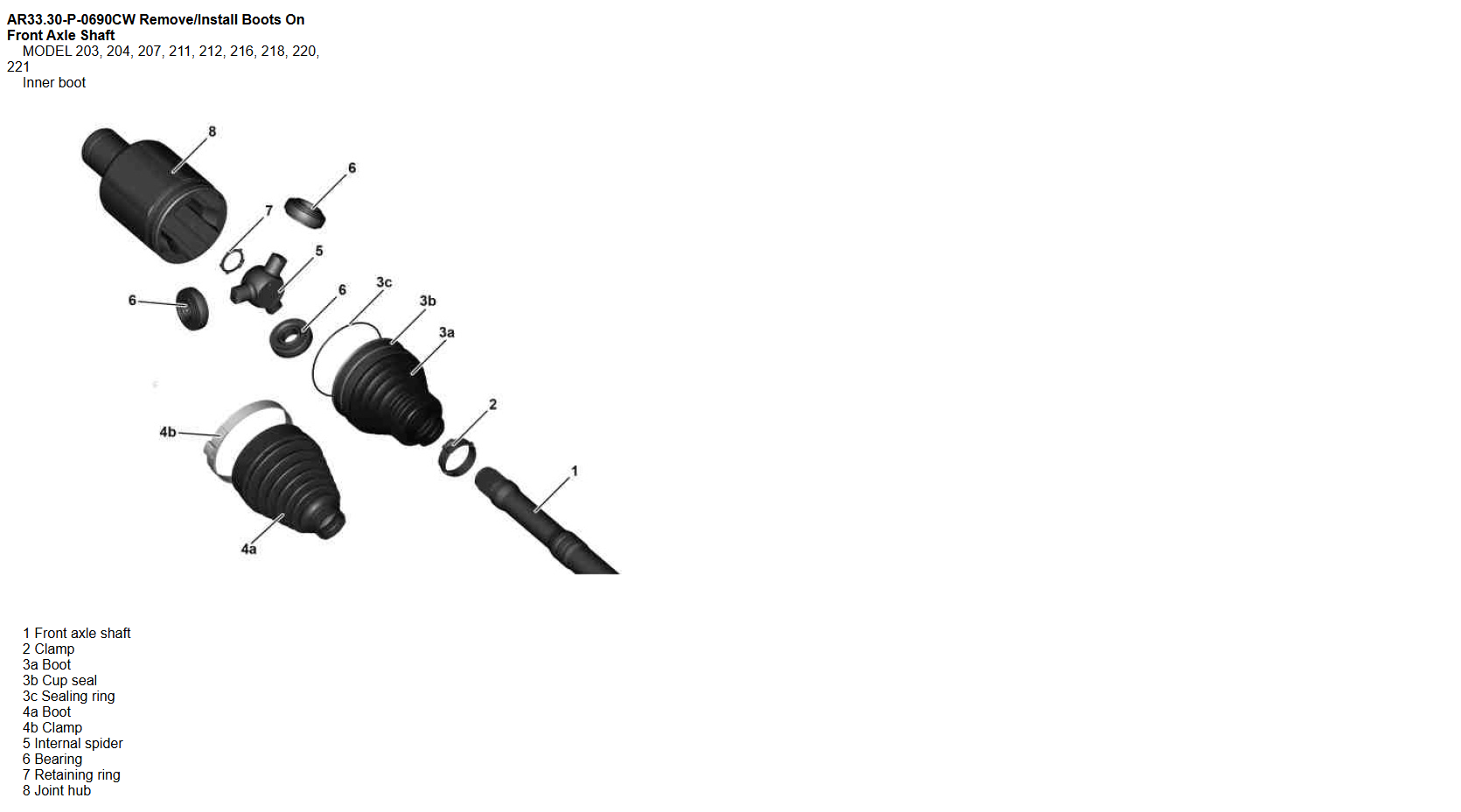 When searching for the part #'s they werent listed separately on the W204 diagrams but I noticed they were on the W221 diagrams, they both list the same "repair kit" part #'s. I also realized the boots are stamped with the part# and the clamps are stamped with the sizes but good luck tracking down Oetiker 167 Heavy Duty clamps by themselves. Bought most of the parts at my local MB parts dept but this time they said they were out of stock for the larger inner clamp so ordered from MBpartsource. There prices are cheaper even with shipping costs added in.
