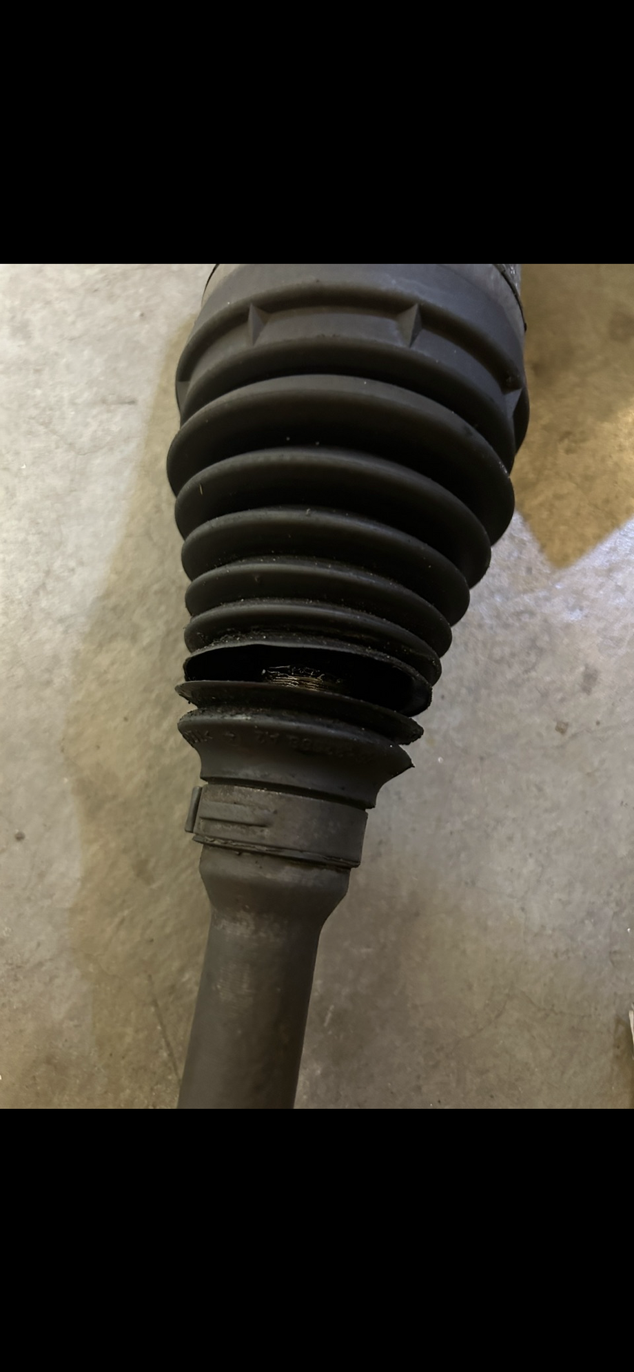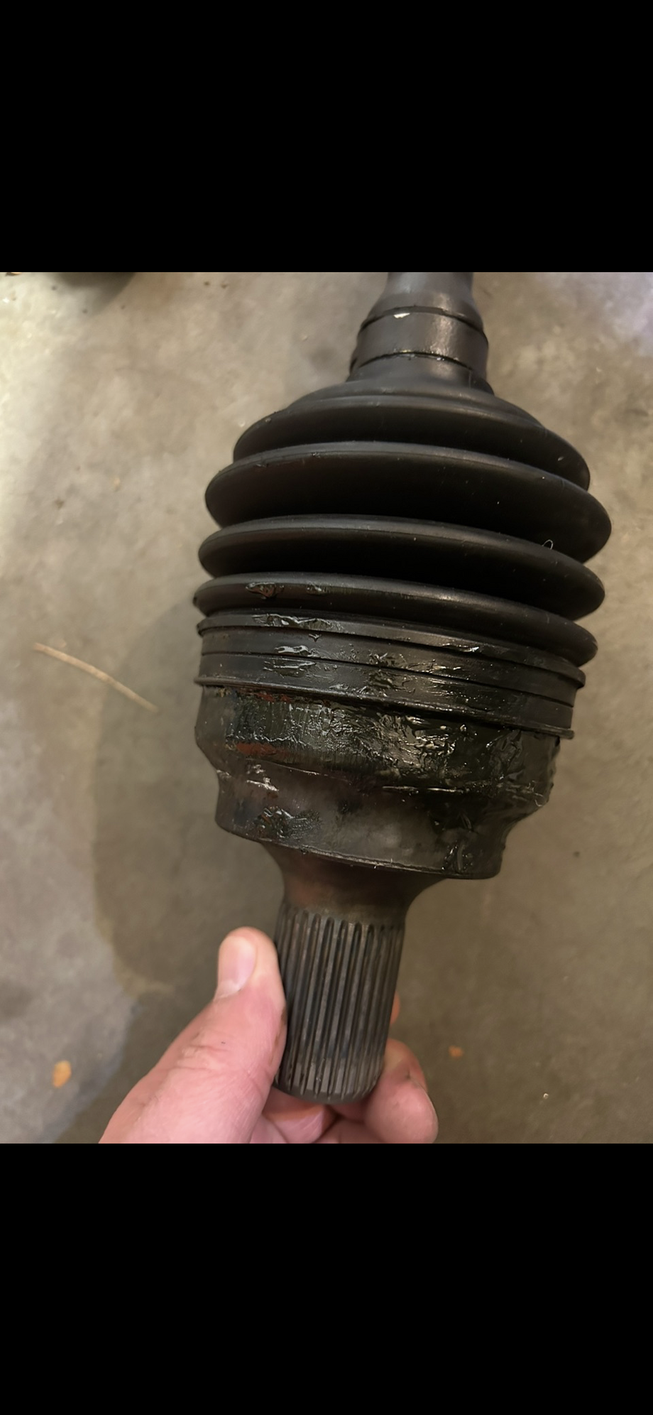 The axle seemed fine just the torn inner boot. It happened fairly recently because I was working inside that wheel well recently to repair the fog light and had inspected everything while there. I couldnt pop the outer cv joint off the axle shaft so instead just put the boot on from the other side after removing the bearing holder from the shaft. After seeing the condition of the grease at the torn boot I was very glad I didnt hold off. The grease looked like caramel.