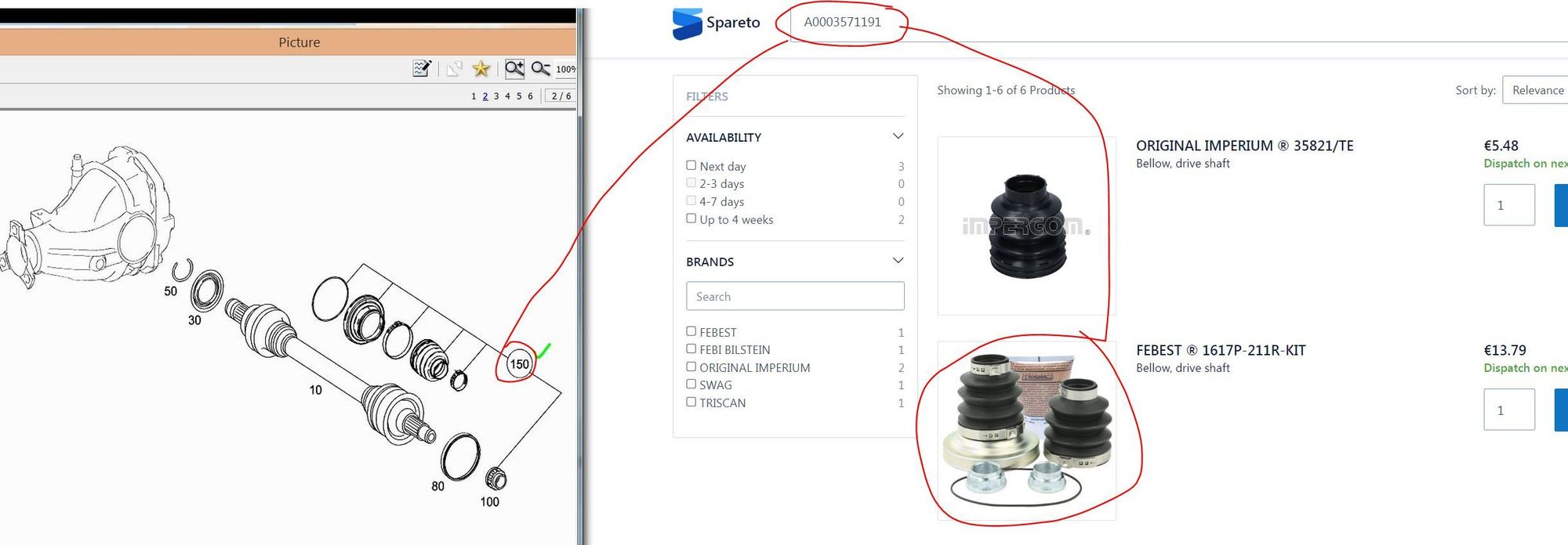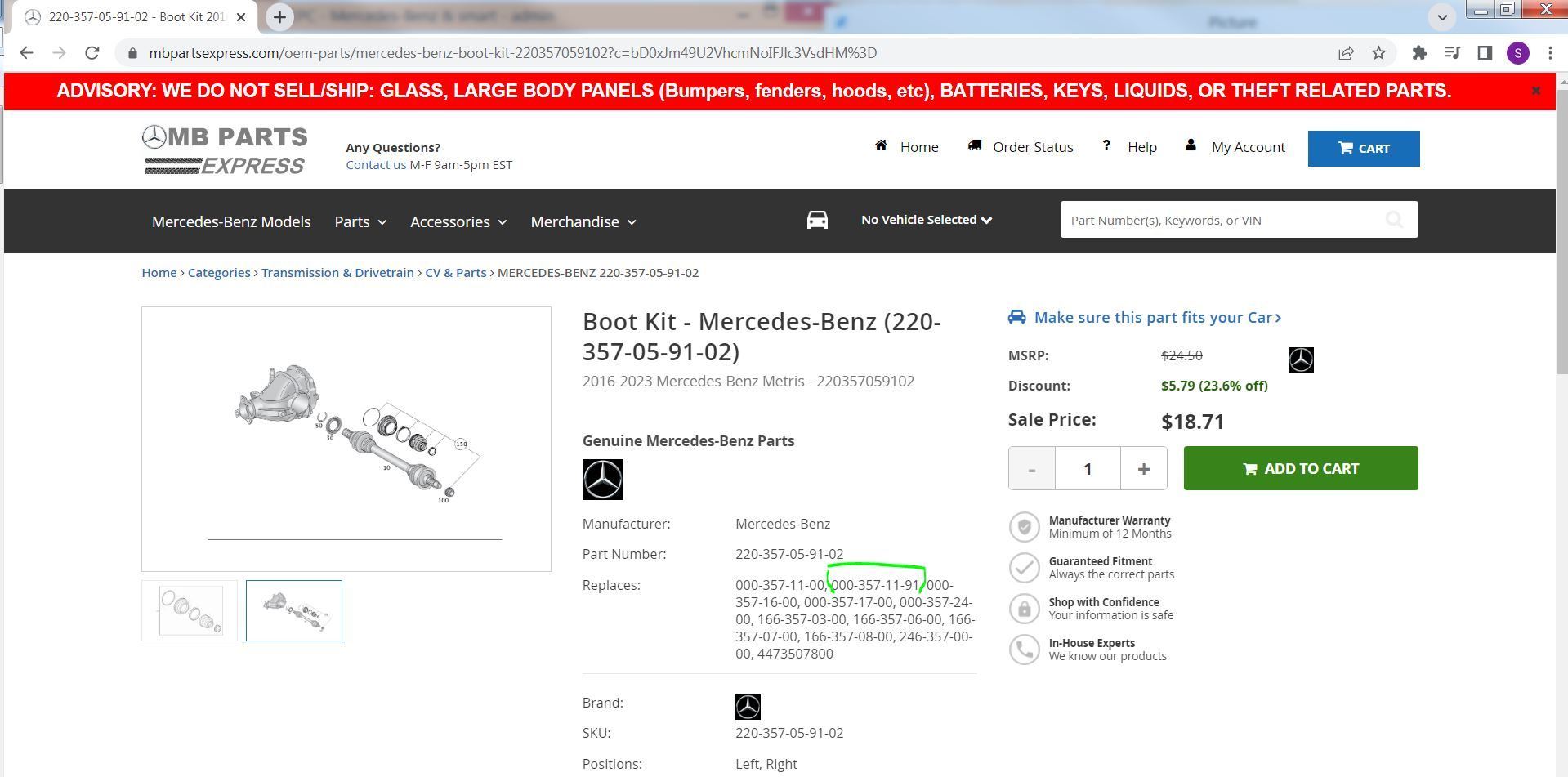 Does seem misleading since when I look up the part 0003570091 on MB parts dept website it takes me to the 211357009102 and it does appear to show 6 parts in the photo and then does say "repair kit". Luckily FCP has the 0003570091 kit by GKN for a good price.