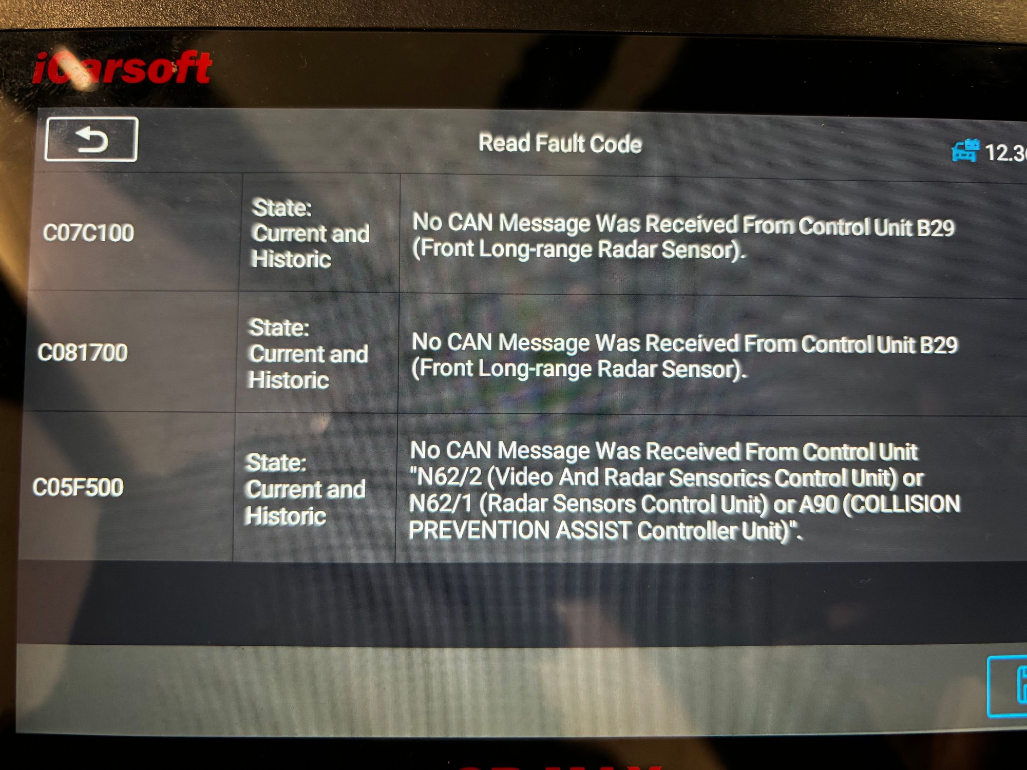 the only light it gives is engine light but no abs/esp light. I have tried changing the radar behind front bumper but no luck.