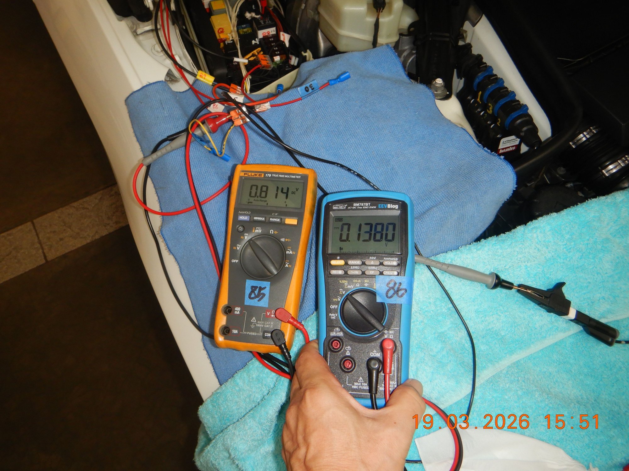 This is Ignition Key inserted ( ECM wakes up ), voltage at relay M pin 85 and pin 86, just ghost voltage, can't even power a 1 watt test light.