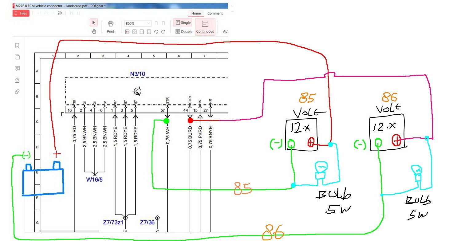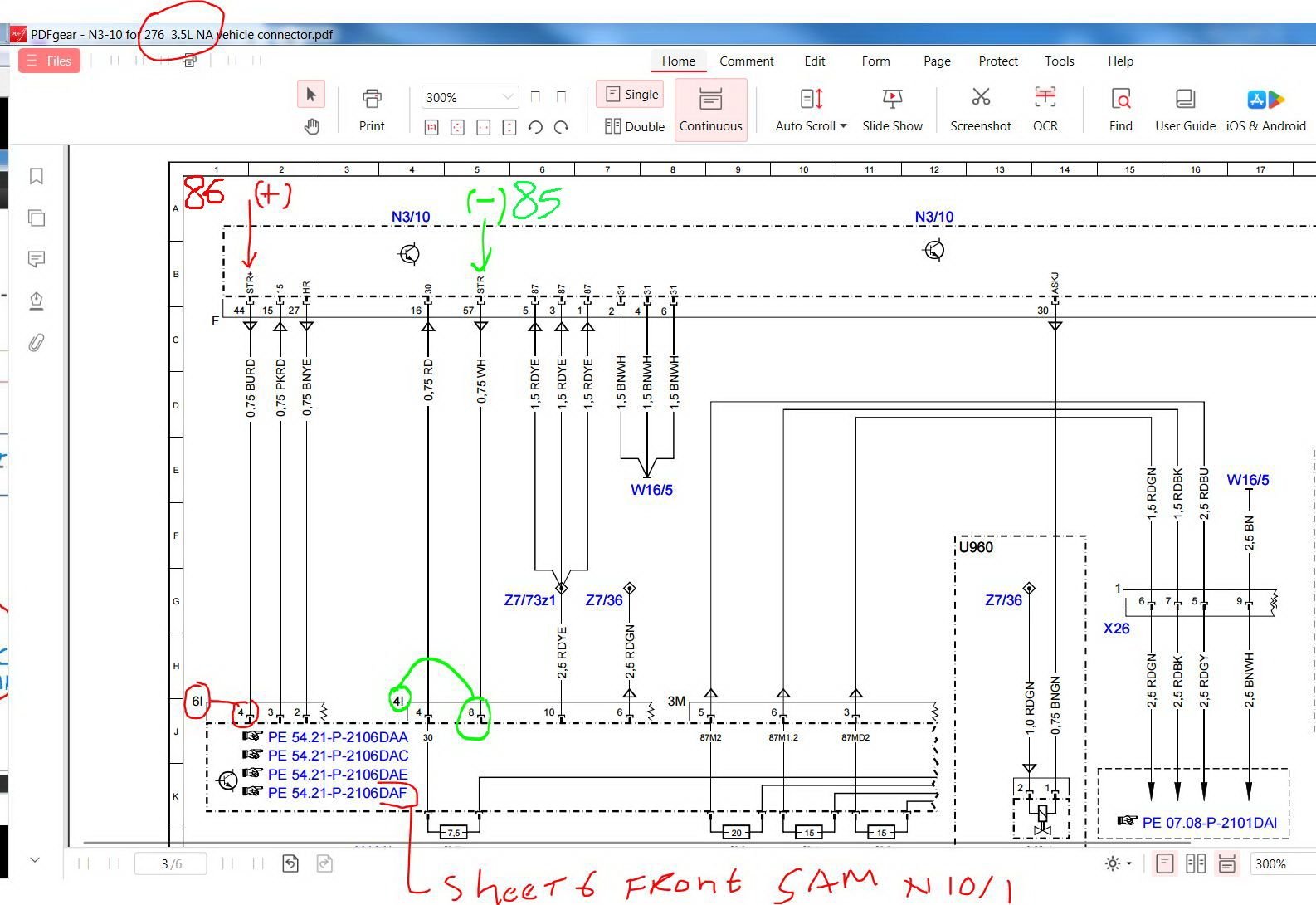 My engine, M276.820 , 3.0 Turbo. ECM to Relay M wiring, the relay M is at the front SAM.