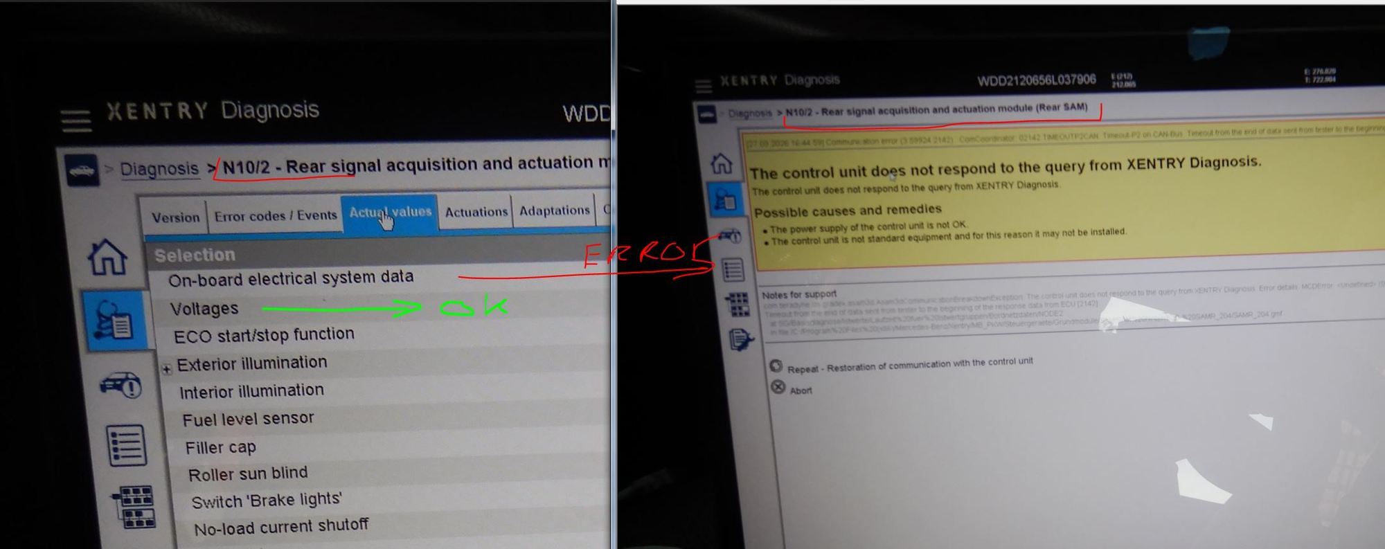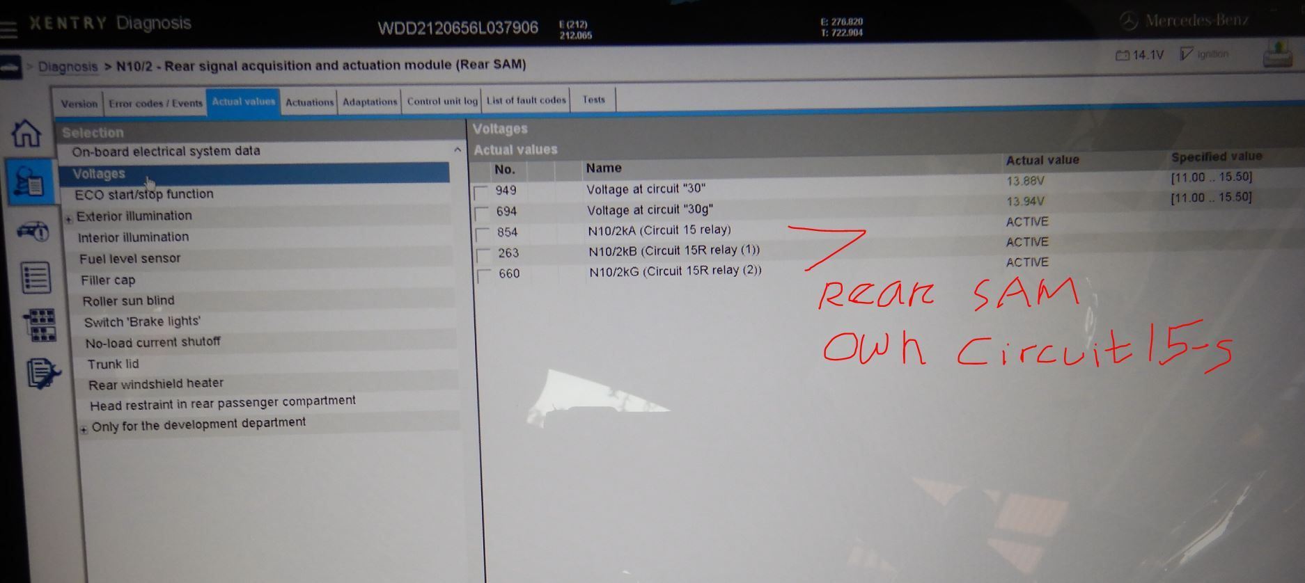 I was trying to read ON BOARD ELECTRICAL DATA, but failed. My Xentry C4 can do it.