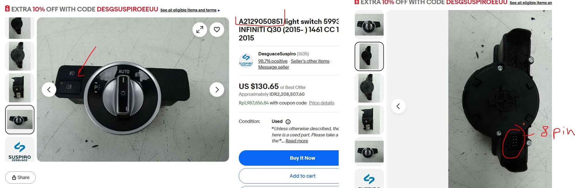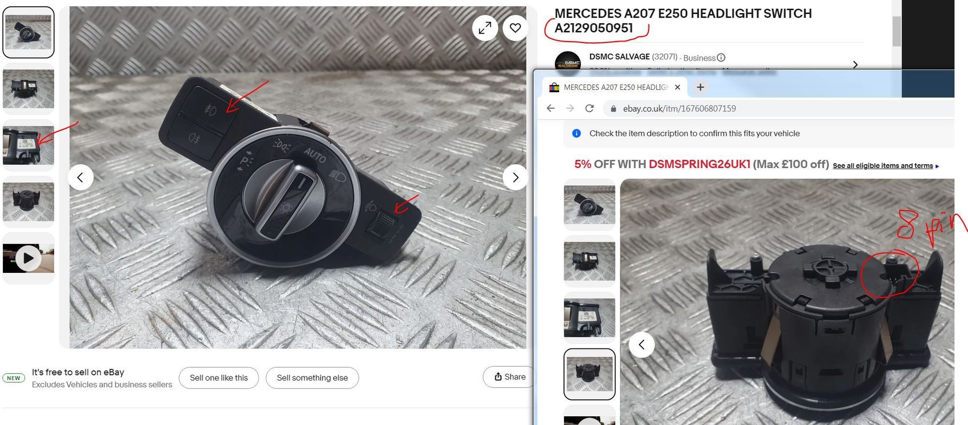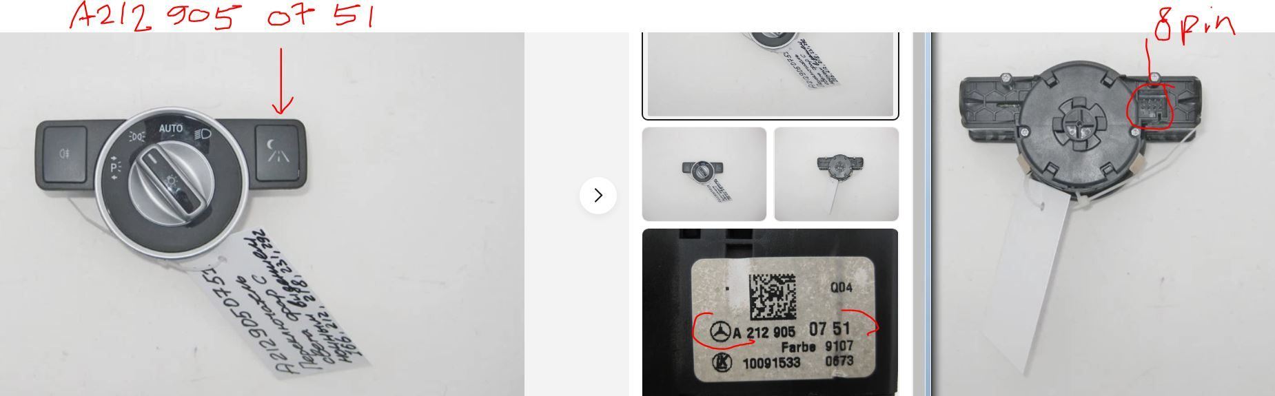 There are 4 Part Numbers for S1 light switch if I choose my car model as W212.065 and without VIN number. A2129050551 <--- Mine