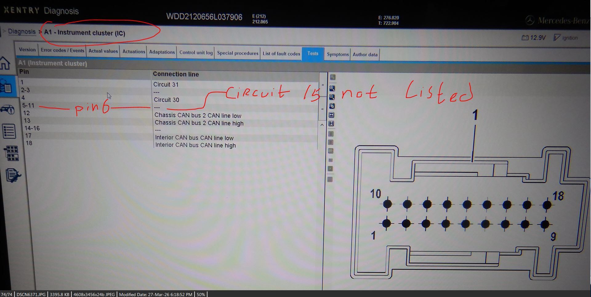 So Xentry said, there is no Fuse 5 Circuit 15 +12V injection to A1 Instrument Cluster, as seen by connector pin assigment.