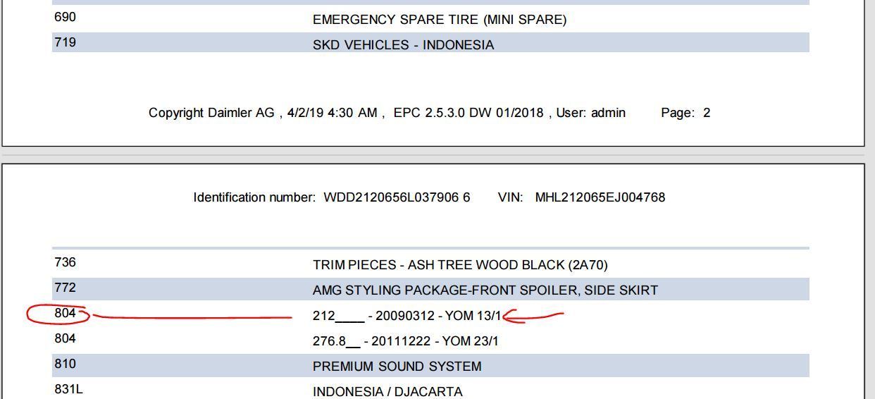 In EPC it is easy, my car is 804 . which meant YOM 13/1 , YOM = Year of Modification and not MANUFACTURING...