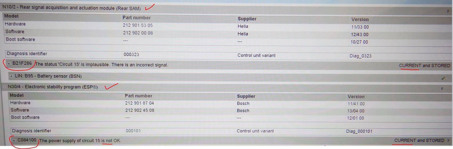 But the typical DTC for N30/4 ESP/ABS and N10/2 Rear SAM does exist....as usual.