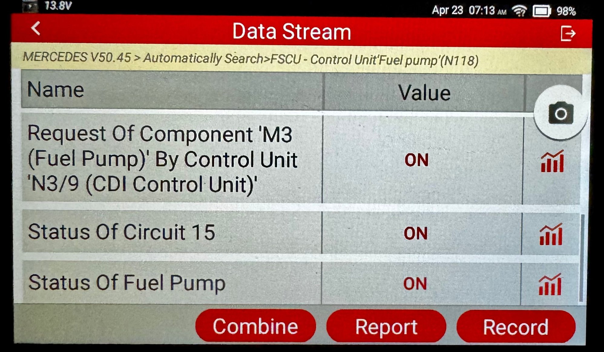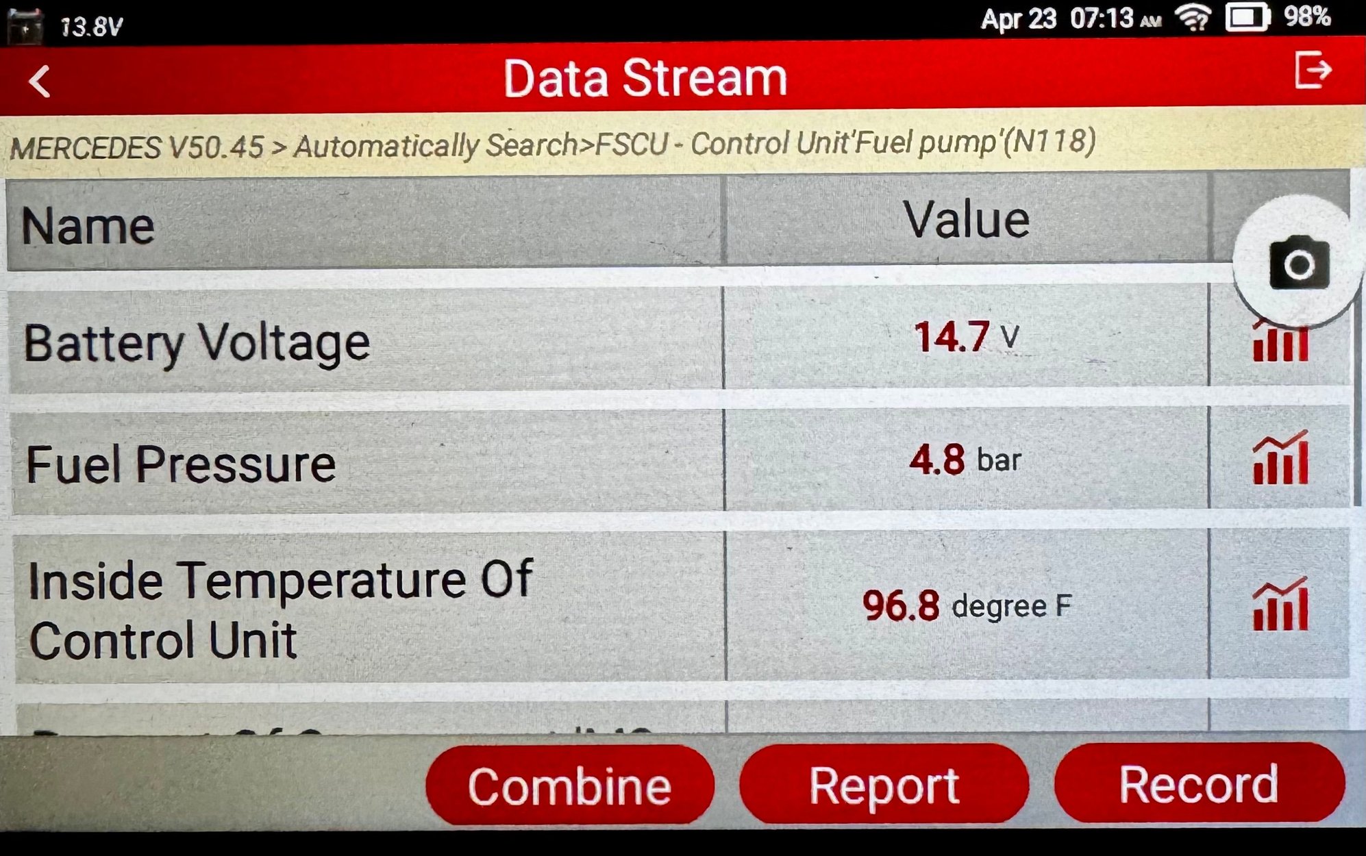 Now see what happens to fuel pressure with engine operating under load.
