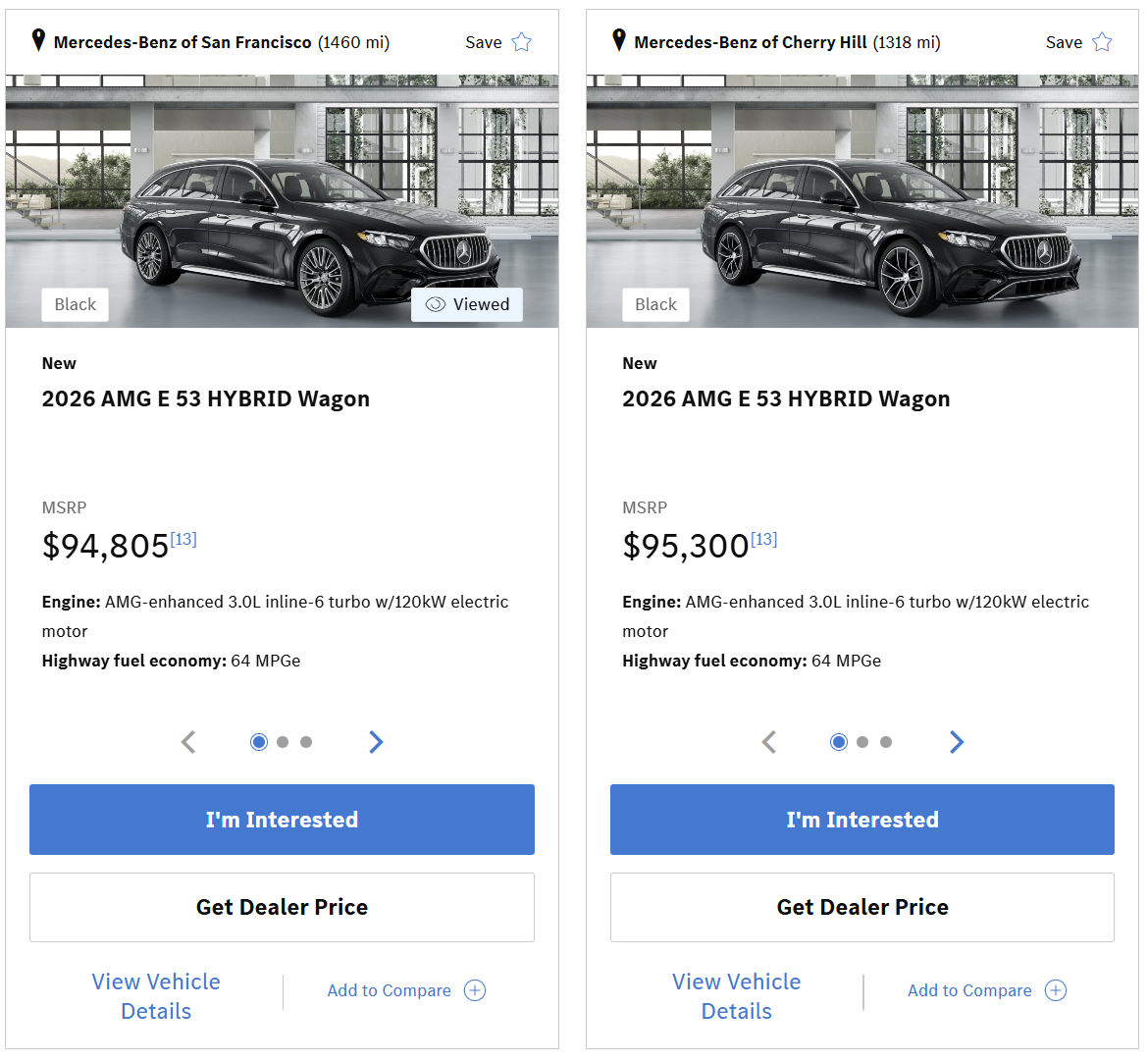 When we submitted the order for the E53, I skipped the headliner at $1,600. When the 2026 E53 Wagon was released on MBUSA.com, the headliner had a price of $450. At $450, I added it to the order. When I realized the price on the build sheet was $1,600, I removed the headliner again.