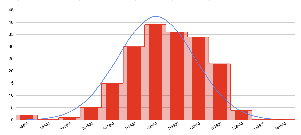 Having said all this, Here is the price distribution of the 189 non E1 cars I've been tracking: