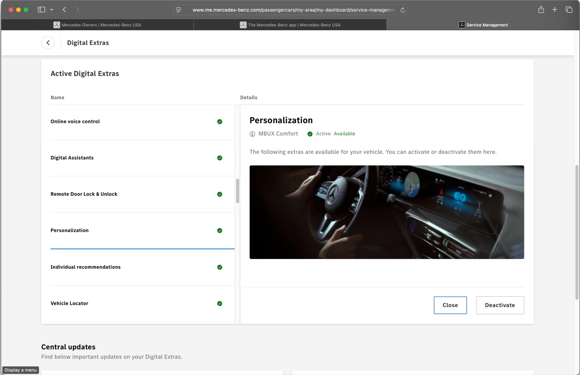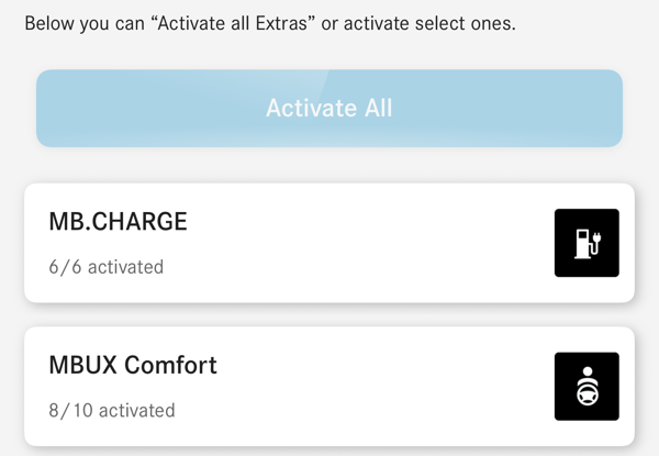 I noticed though that my “digital extras” says all activated, but when clicking for details, it says 7/10 for MBUX Comfort. The “Personalization” is one I suspect allows for the light settings, but isn’t one that can be “toggled”.
